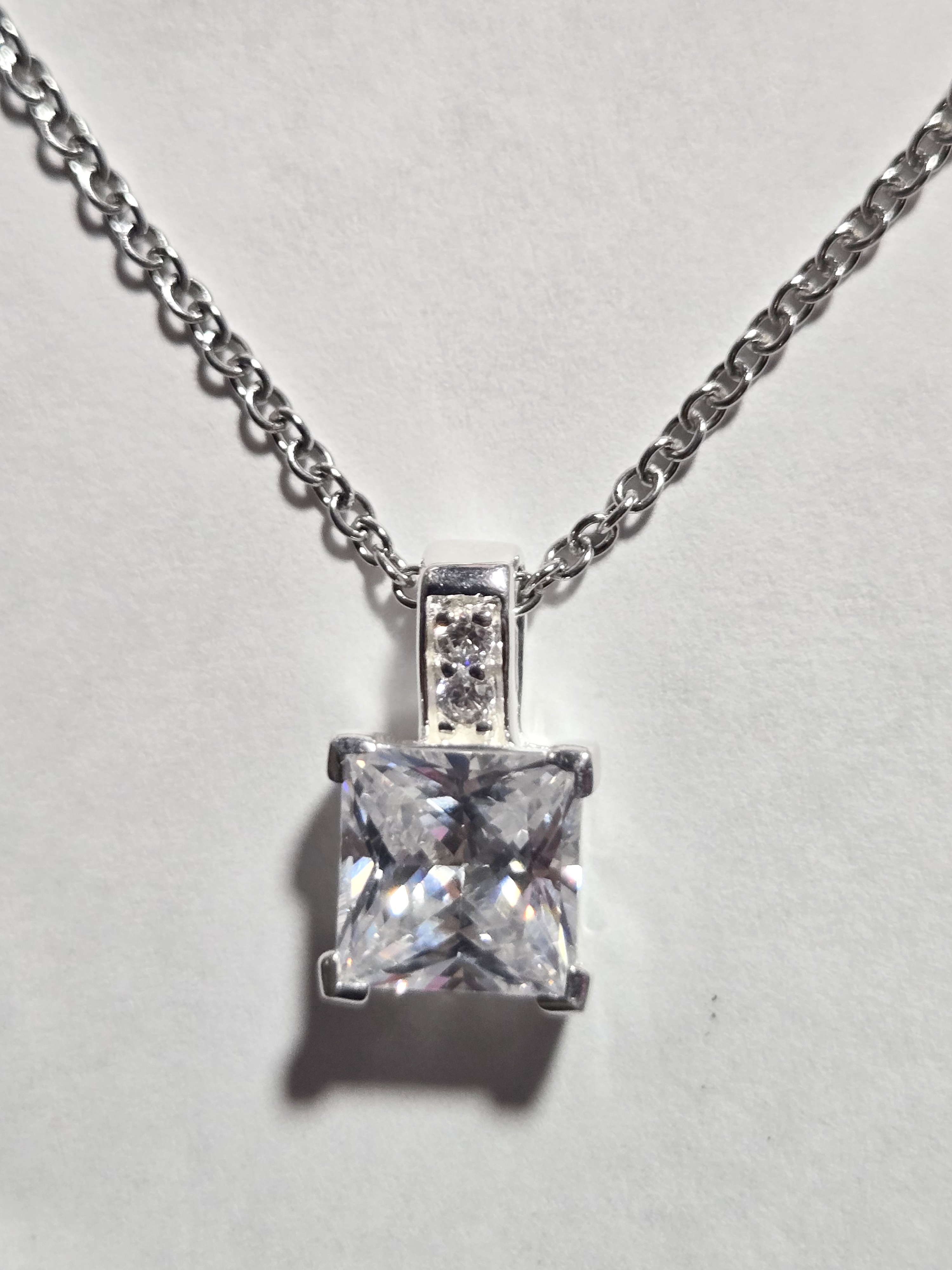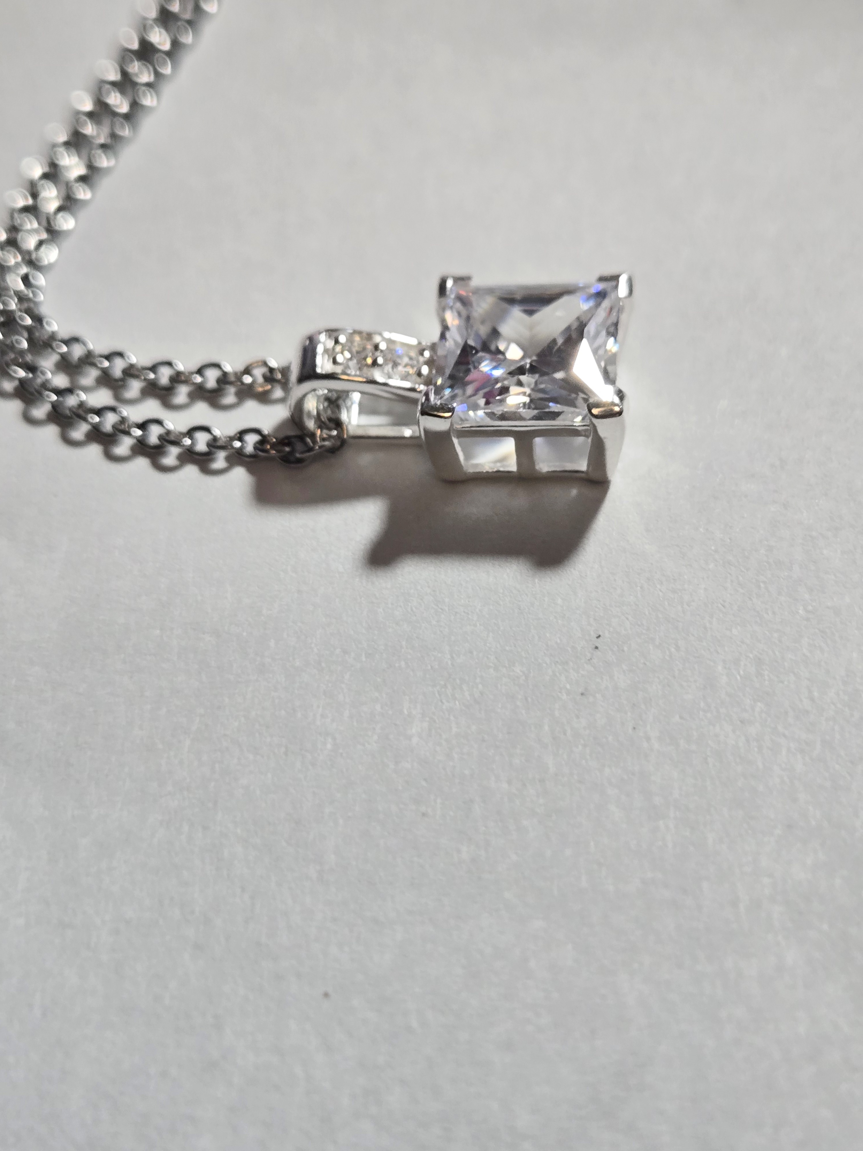 No Reserve Simulated Princess Cut Diamond Pendant & Chain Necklace |