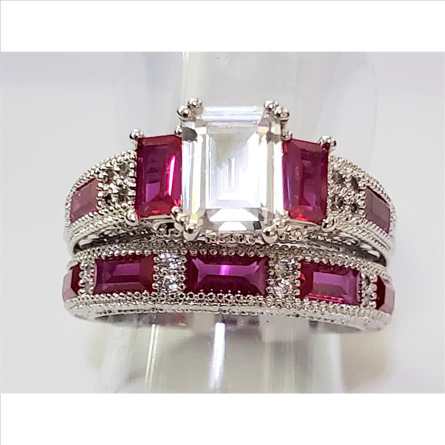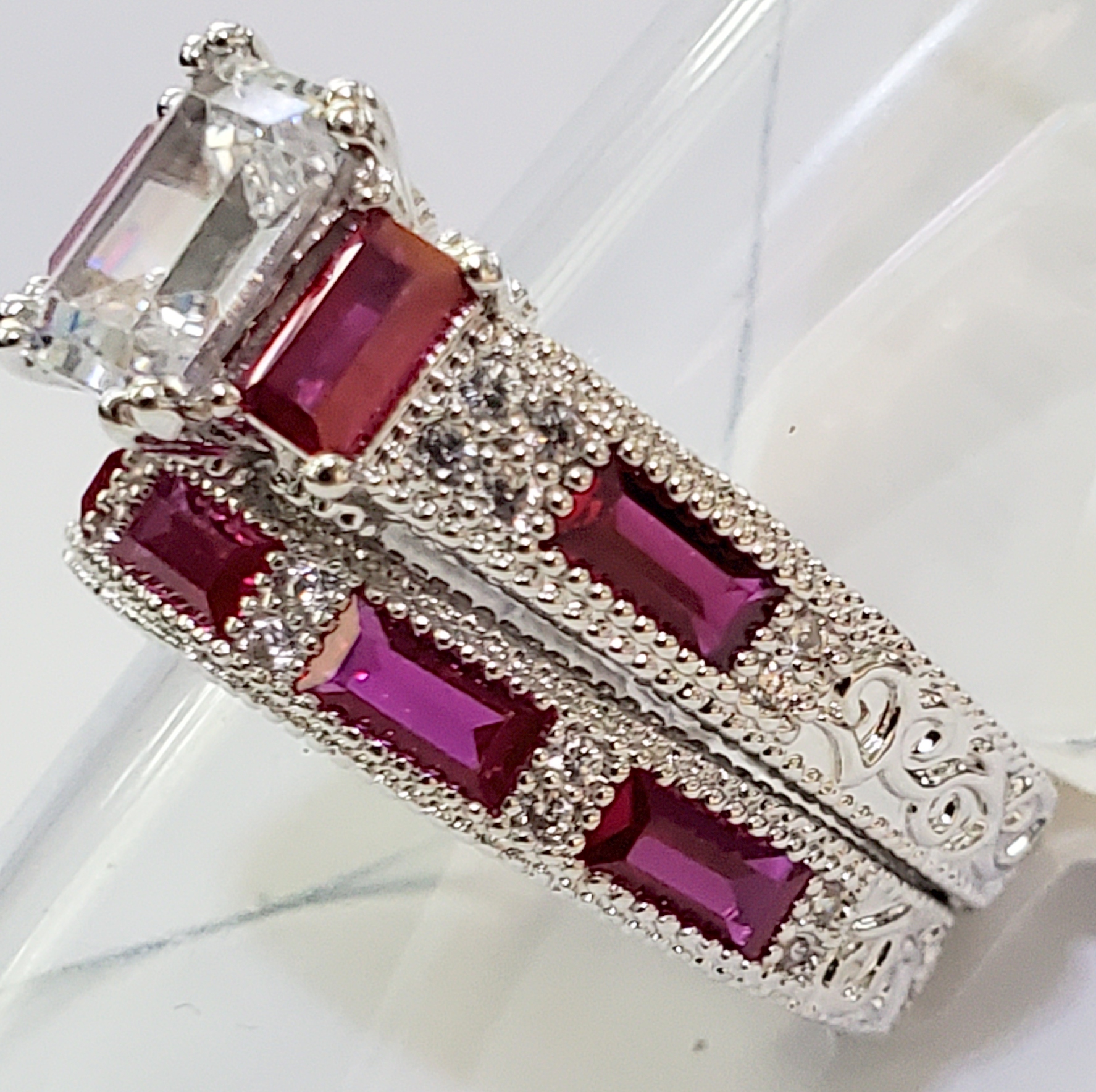 No Reserve Simulated Ruby & Diamond Wedding Engagement Rings Size 8 |