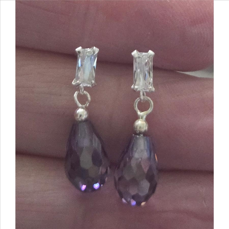 No Reserve.Natural Amethyst Briolette Dangle Earrings |