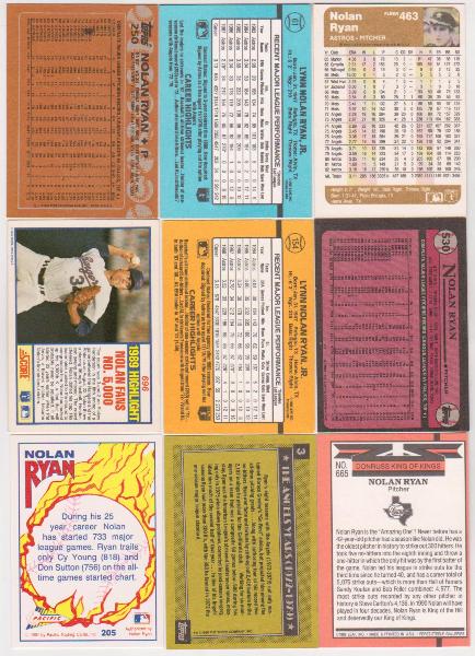 Nolan Ryan Card Collection (1983-1991) - 9 Different