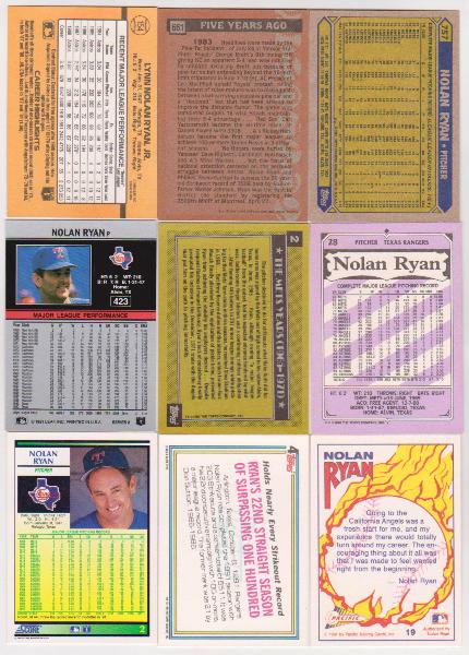 Nolan Ryan Card Collection (1987-1992) - 9 Different