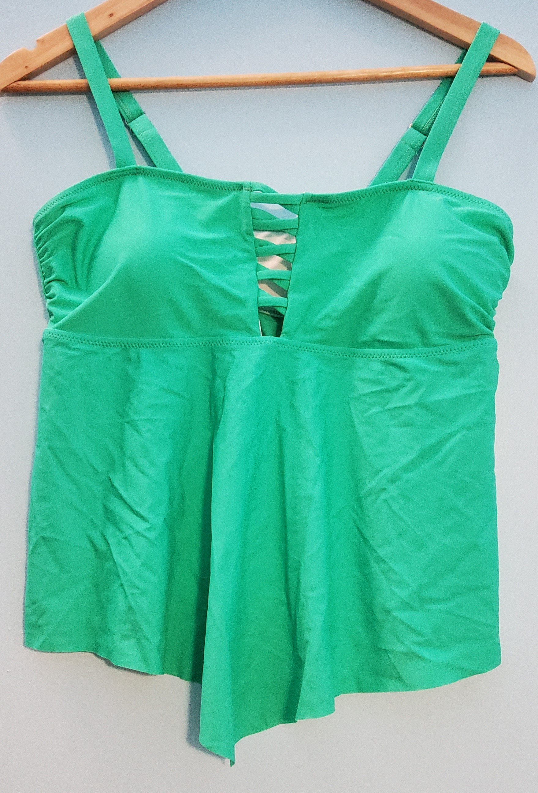 Wide adjustable strap, lace up mid bra area, padded bra, v shape skirt