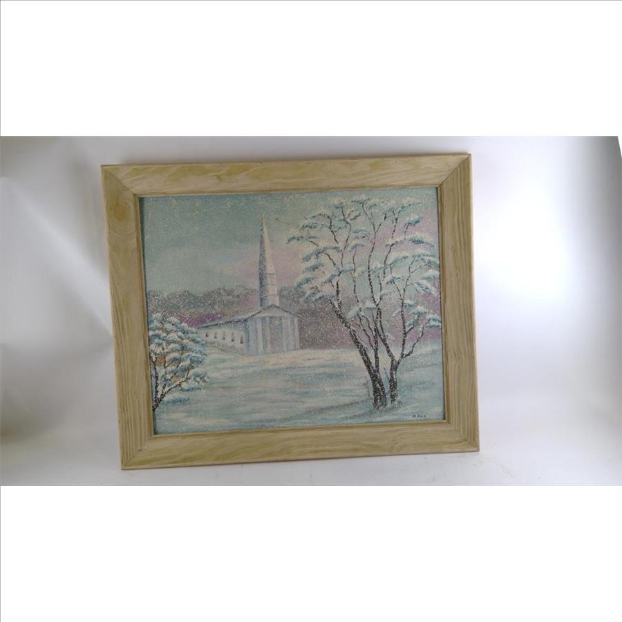 Oil Painting Of Snowy Churchfront