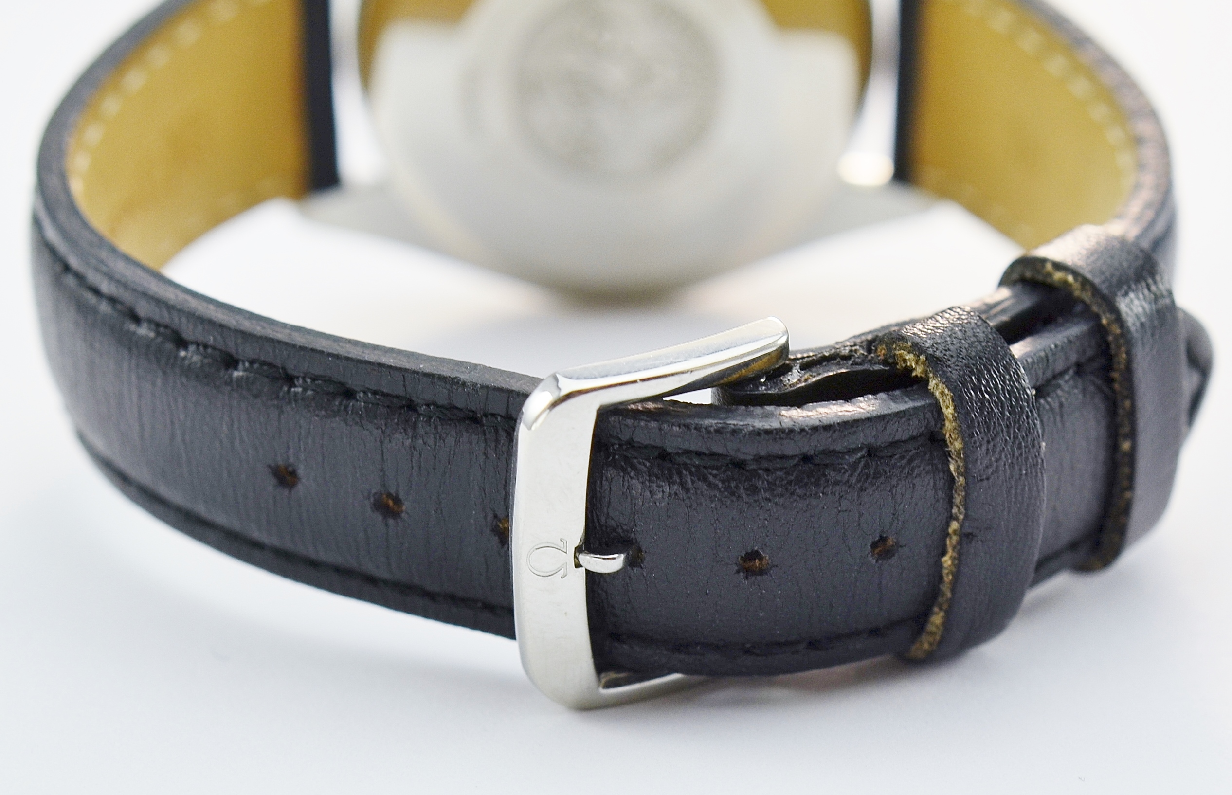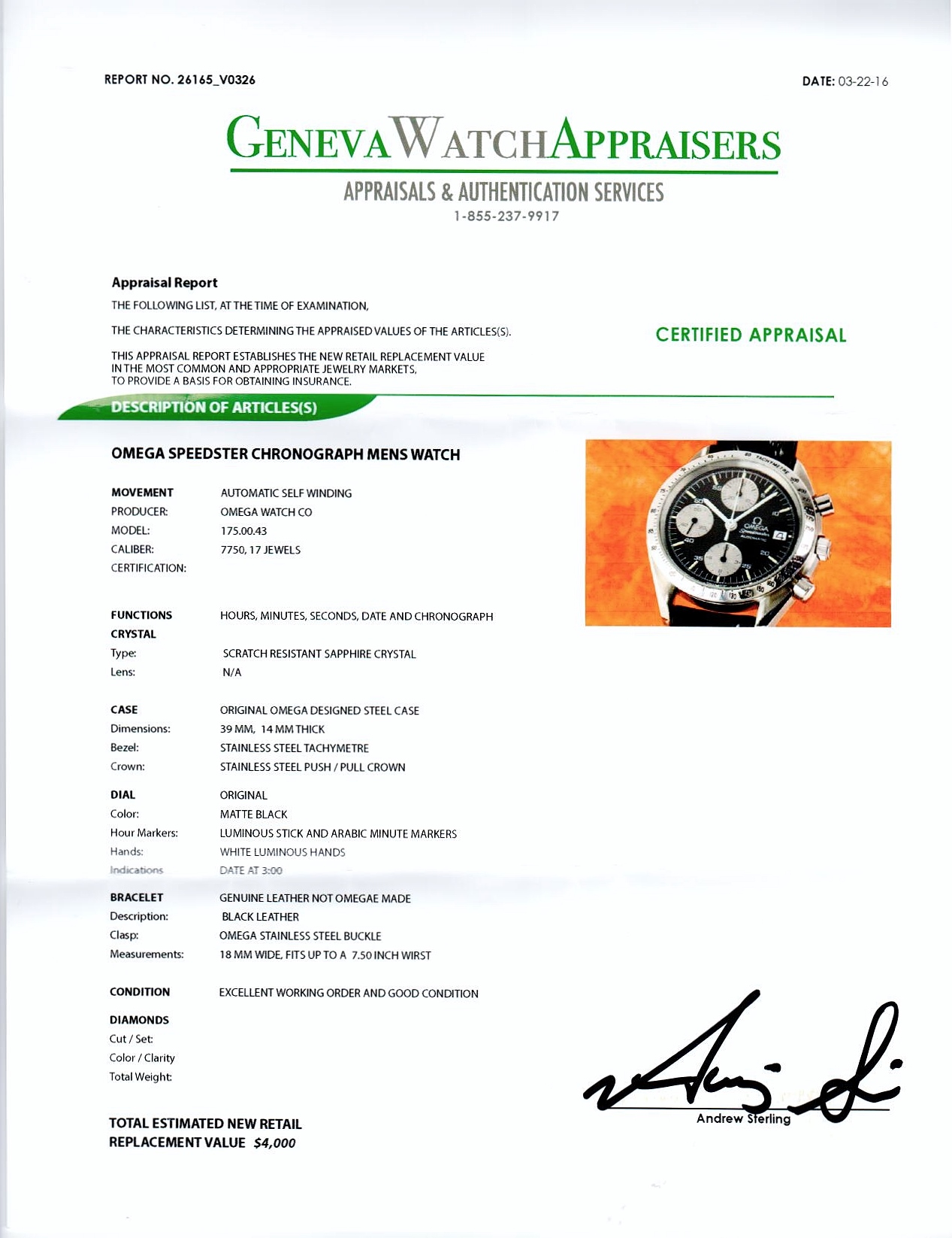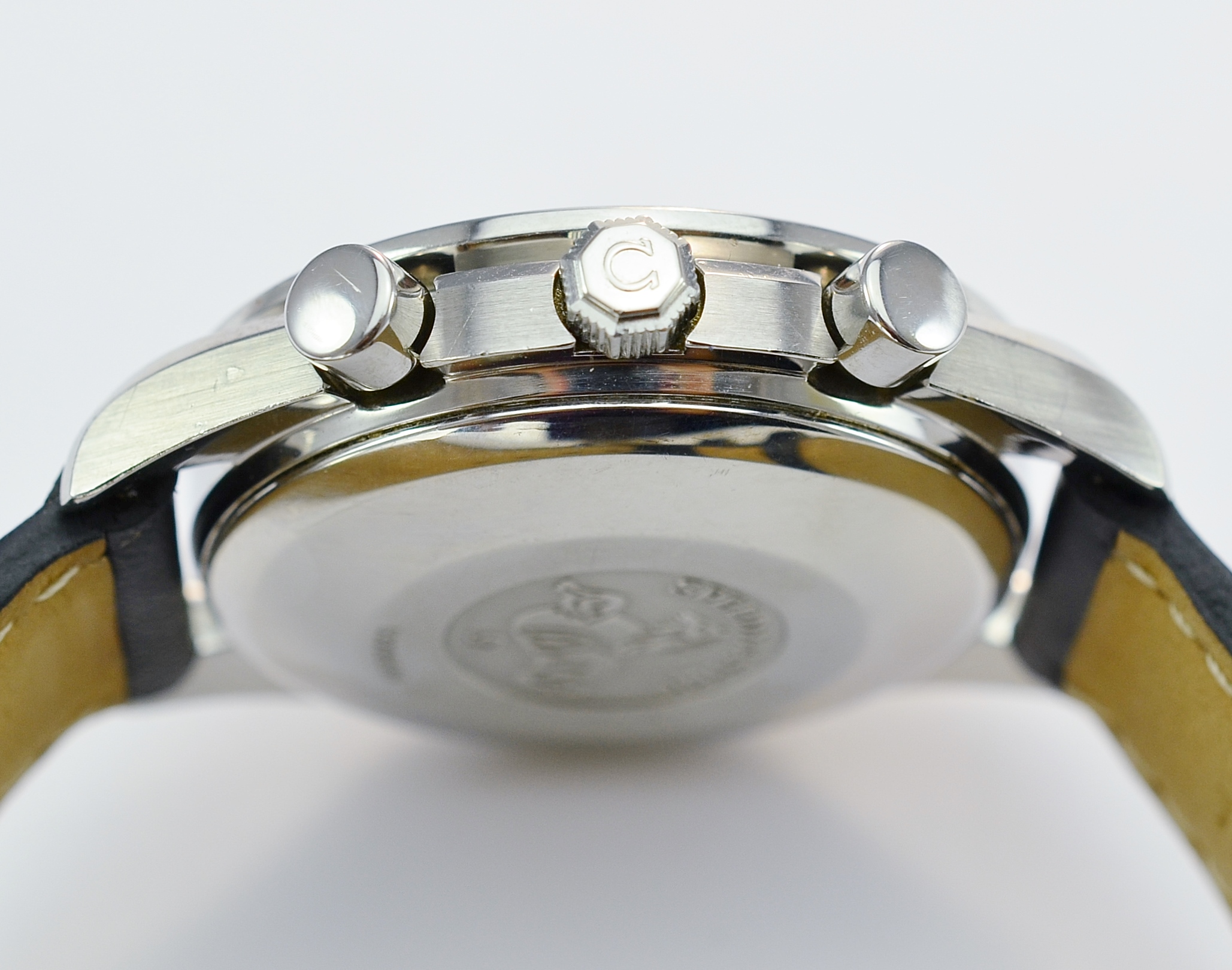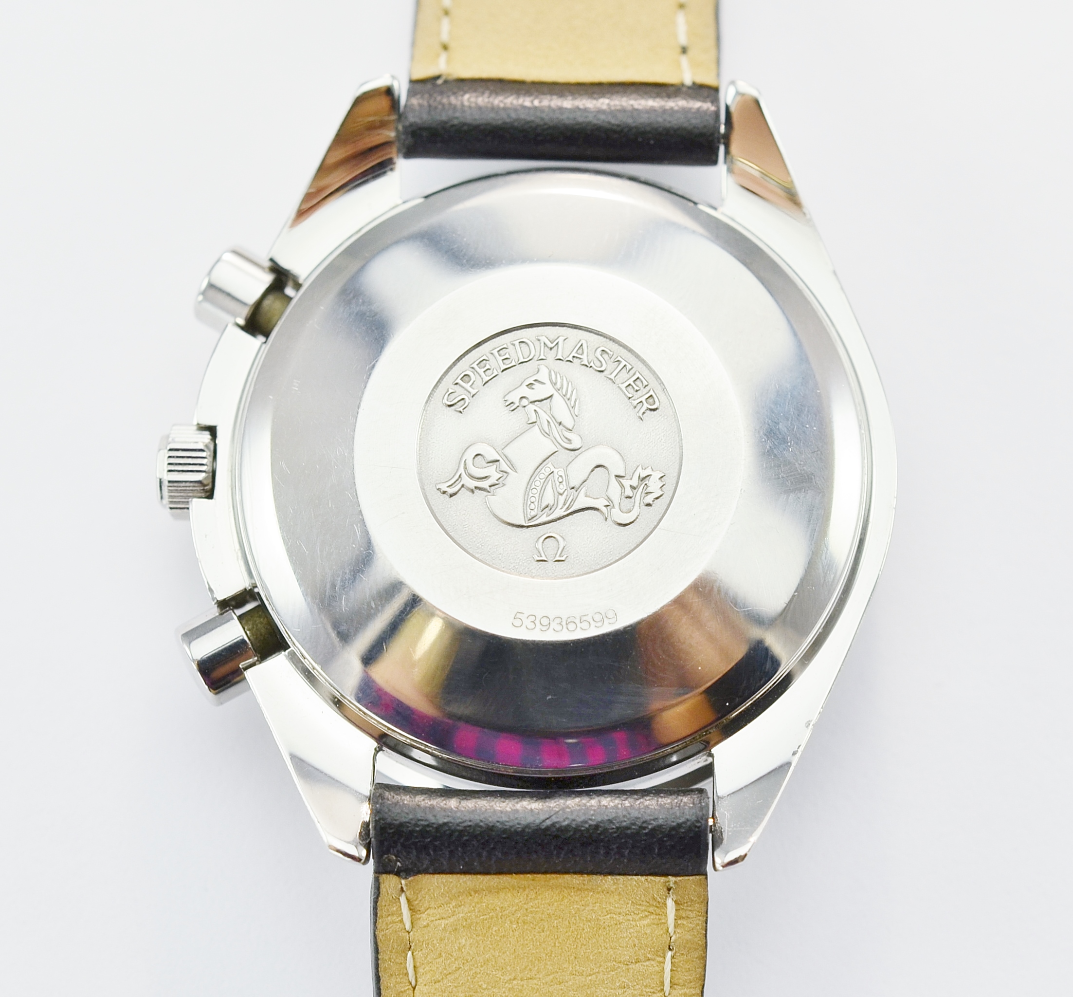 Omega Speedmaster Chronograph Stainless Steel Matte Black Dial Men's Watch on Black Leather Strap
