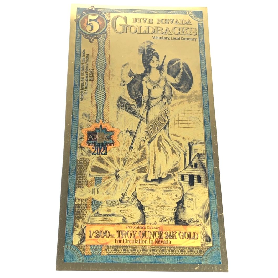 One 5 Nevada Goldbacks*1/200 Troy Ounce of 24K Gold*For Circulation in Nevada
