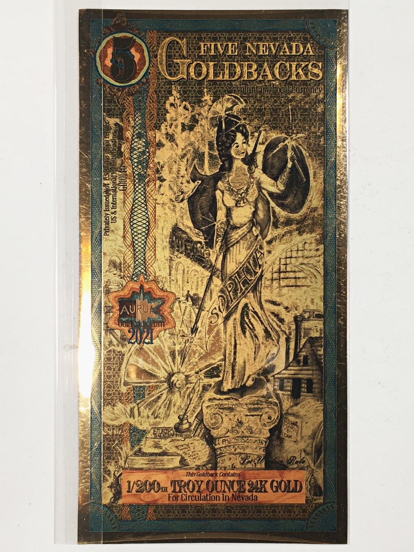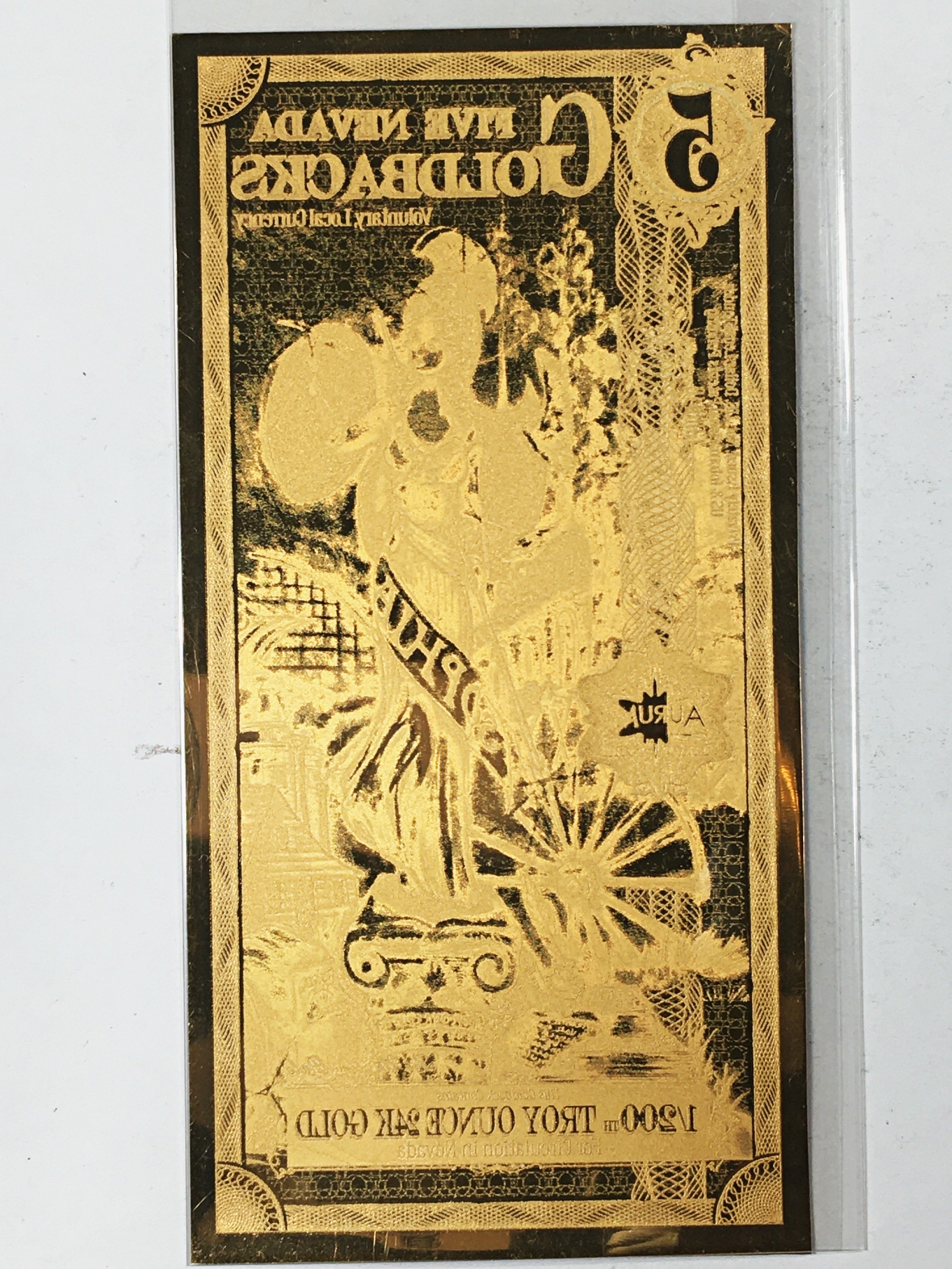 One 5 Nevada Goldbacks*1/200 Troy Ounce of 24K Gold*For Circulation in Nevada