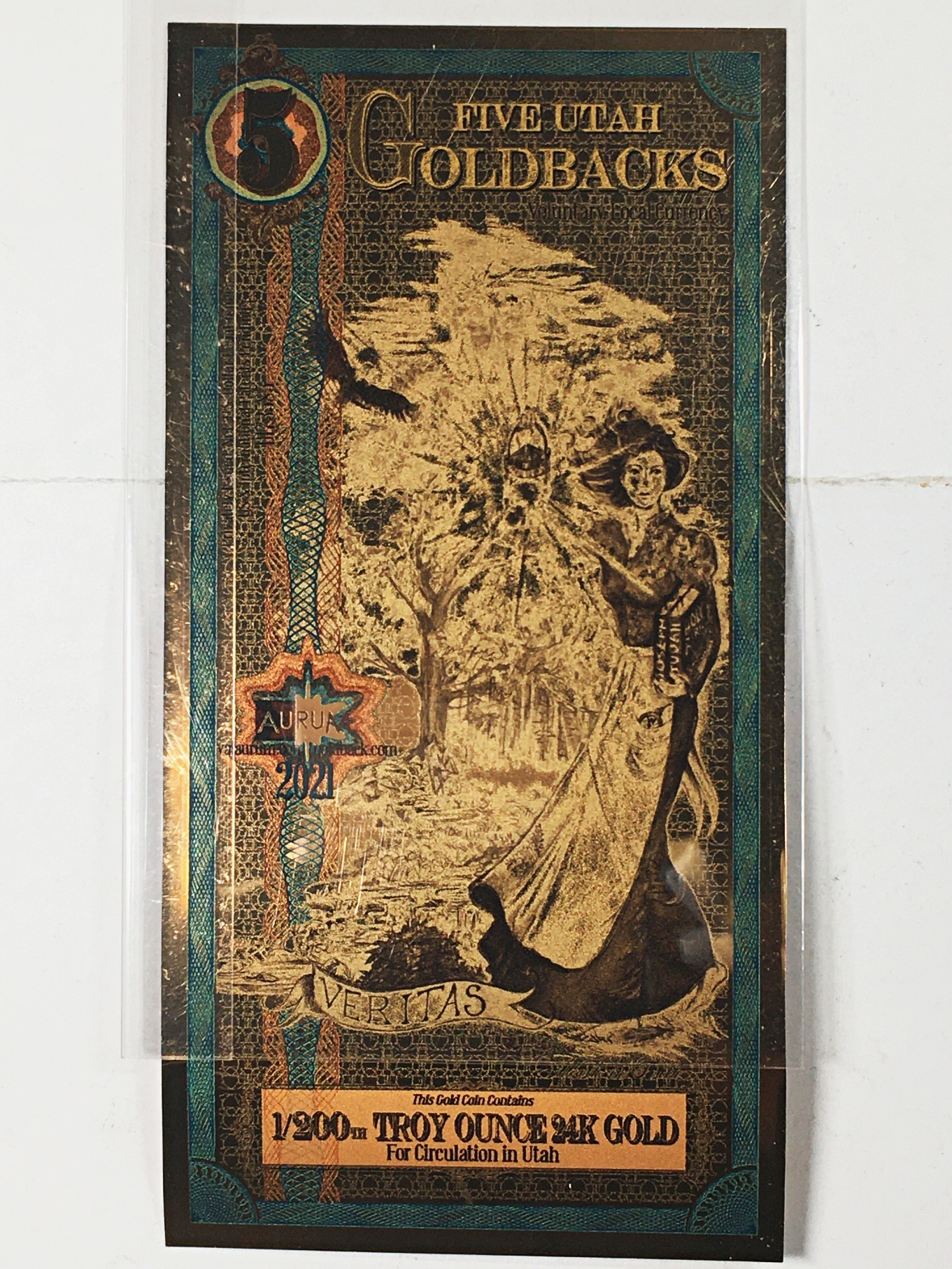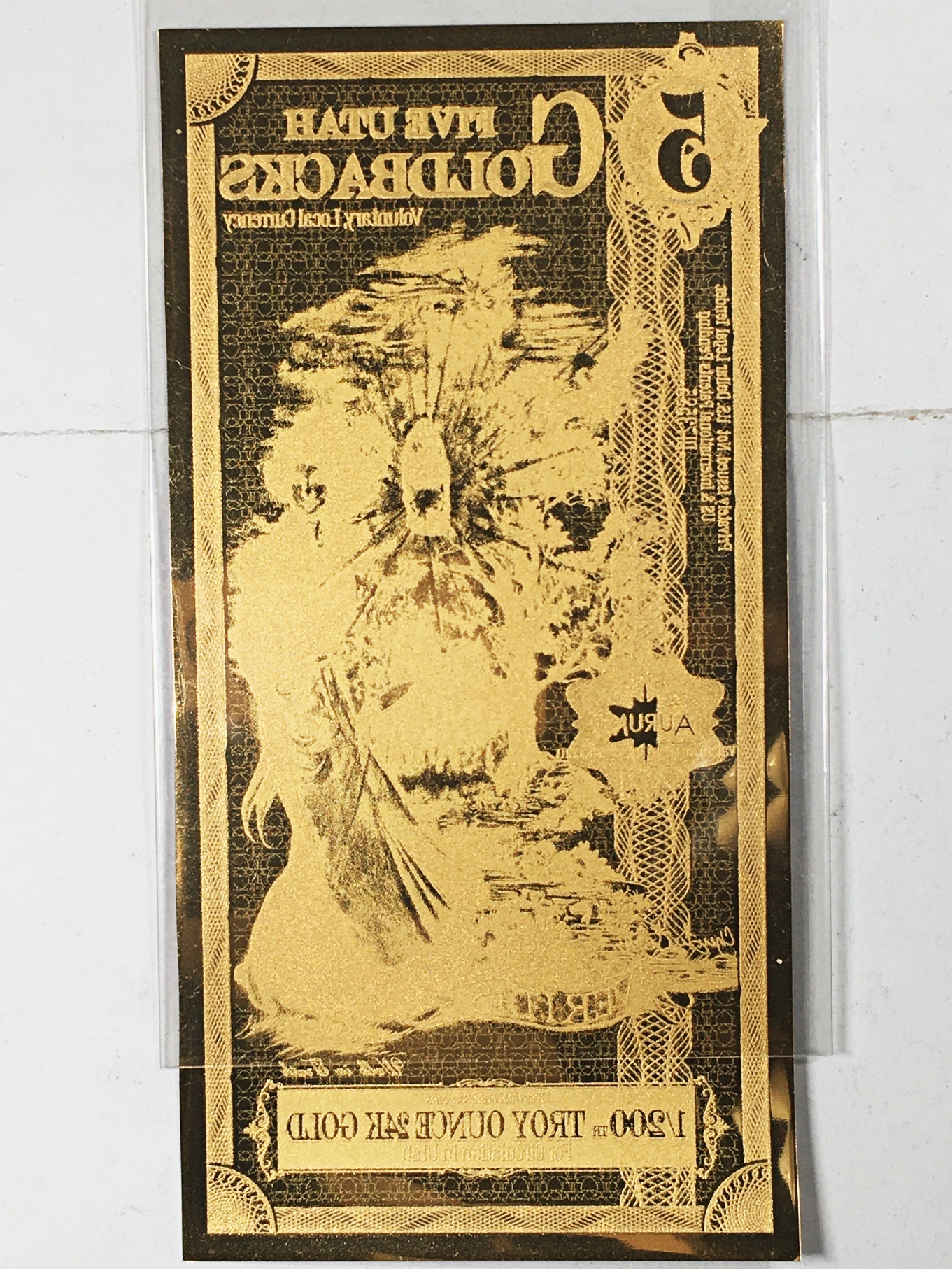 One 5 Utah Goldbacks*1/200 Troy Ounce of 24K Gold*For Circulation in Utah