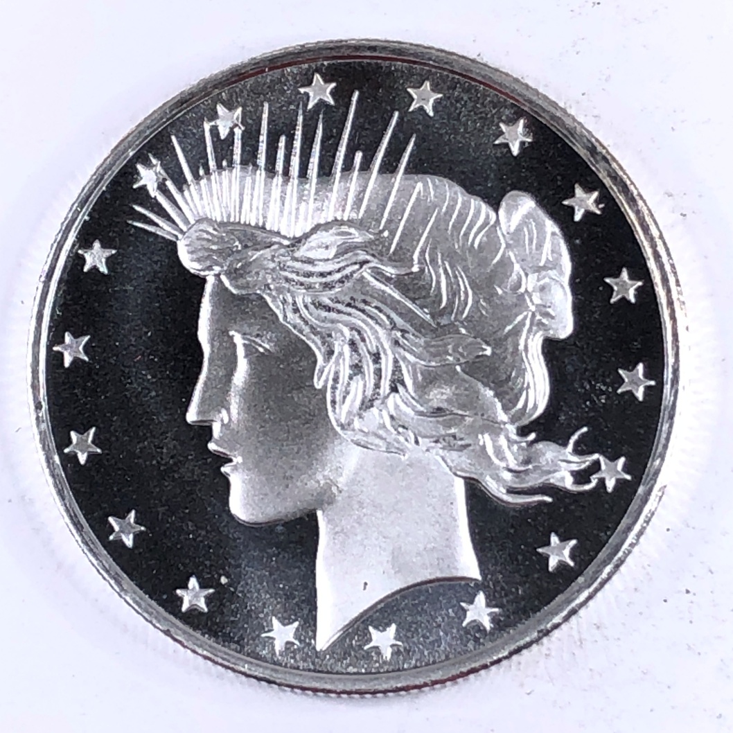 One Troy Ounce .999 Fine Silver Round*Peace Dollar Design