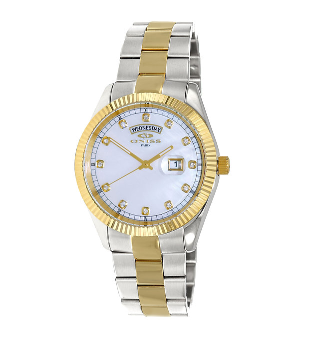 ONISS DAY-DATE WITH SUN RAY WHITE DIAL , ON3881-2TWT , RETAIL AT $345.00
