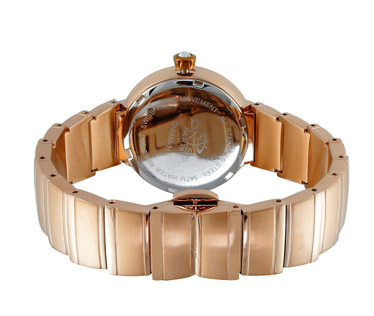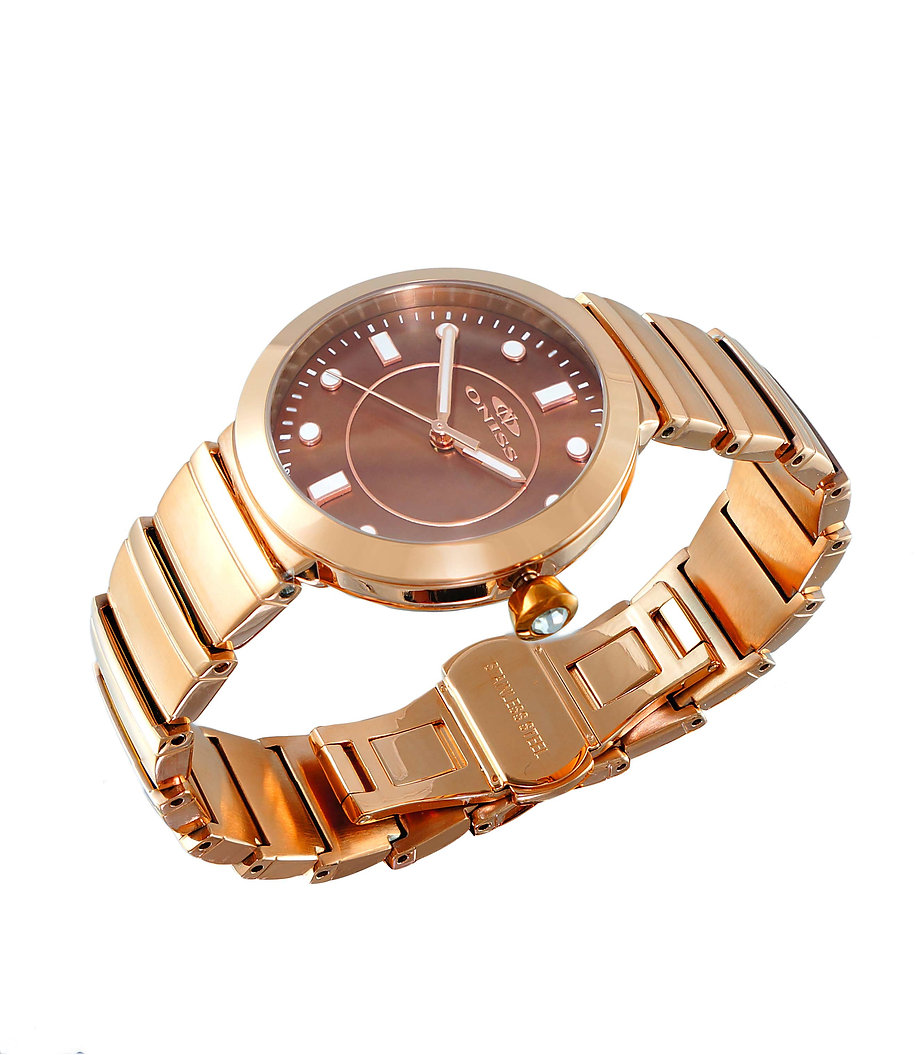 ONISS LADIES SWISS MOVEMENT, BROWN-ROSE MOTHER OF PEARL DIAL, ON5559-32BNRG - RETAIL AT (MSRP: $425.00)