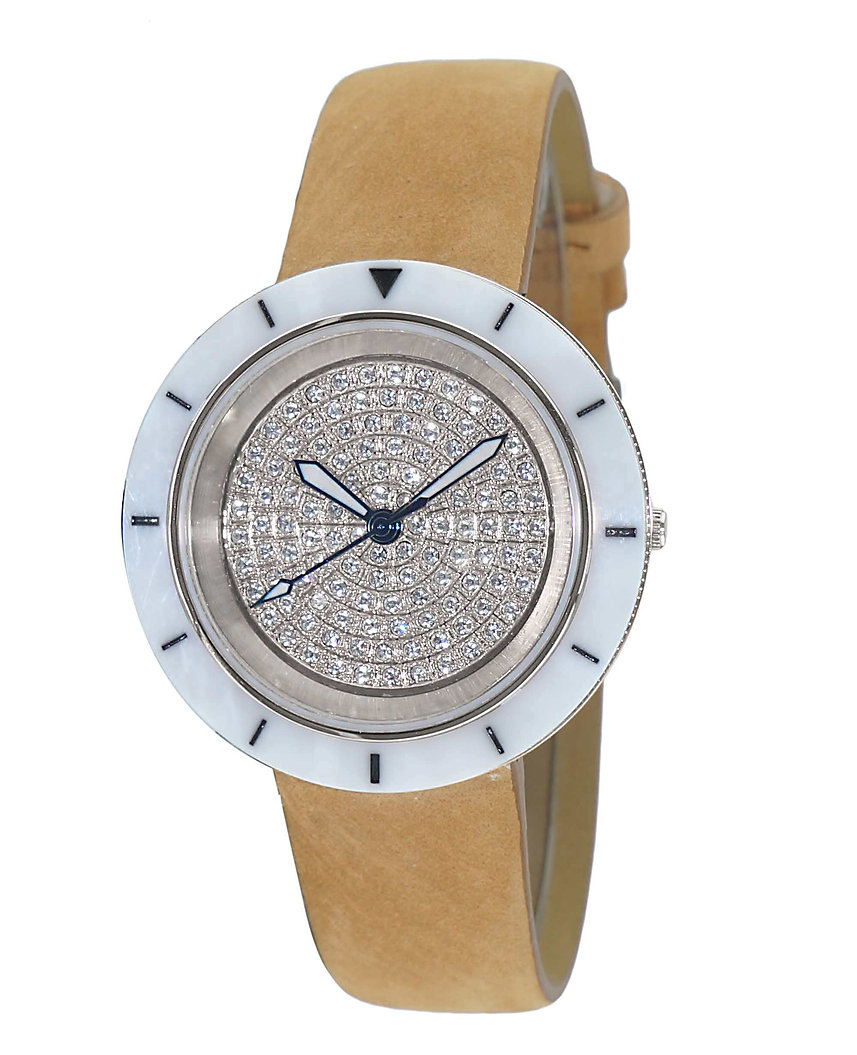 ONISS Ladies, White High-tech Ceramic and Stainless Steel Case and Brown Genuine Leather Strap, ON7260-LBN (MSRP: $550.00)