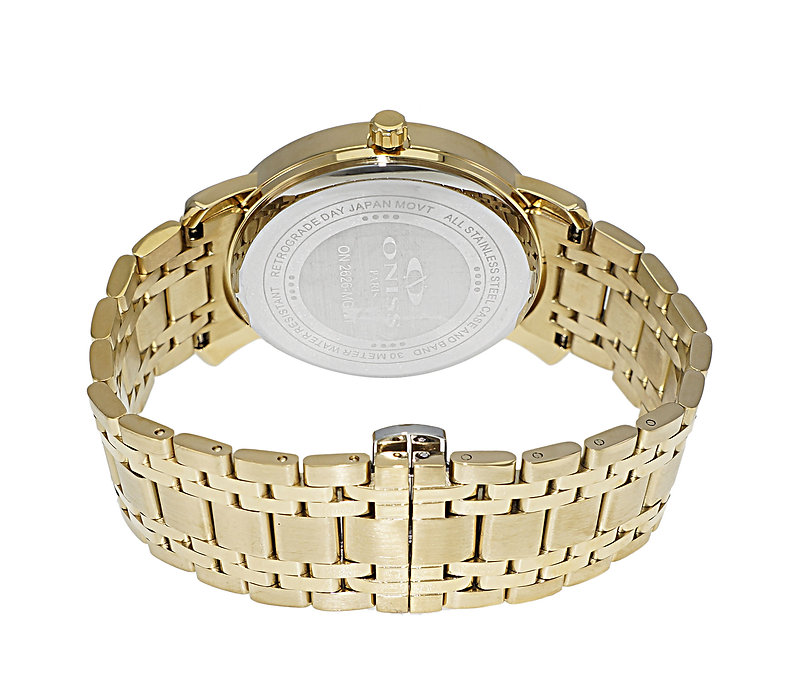 Band Material All Stainless Steel (304L Gold tone), Polished middle link, Deployment clasp.