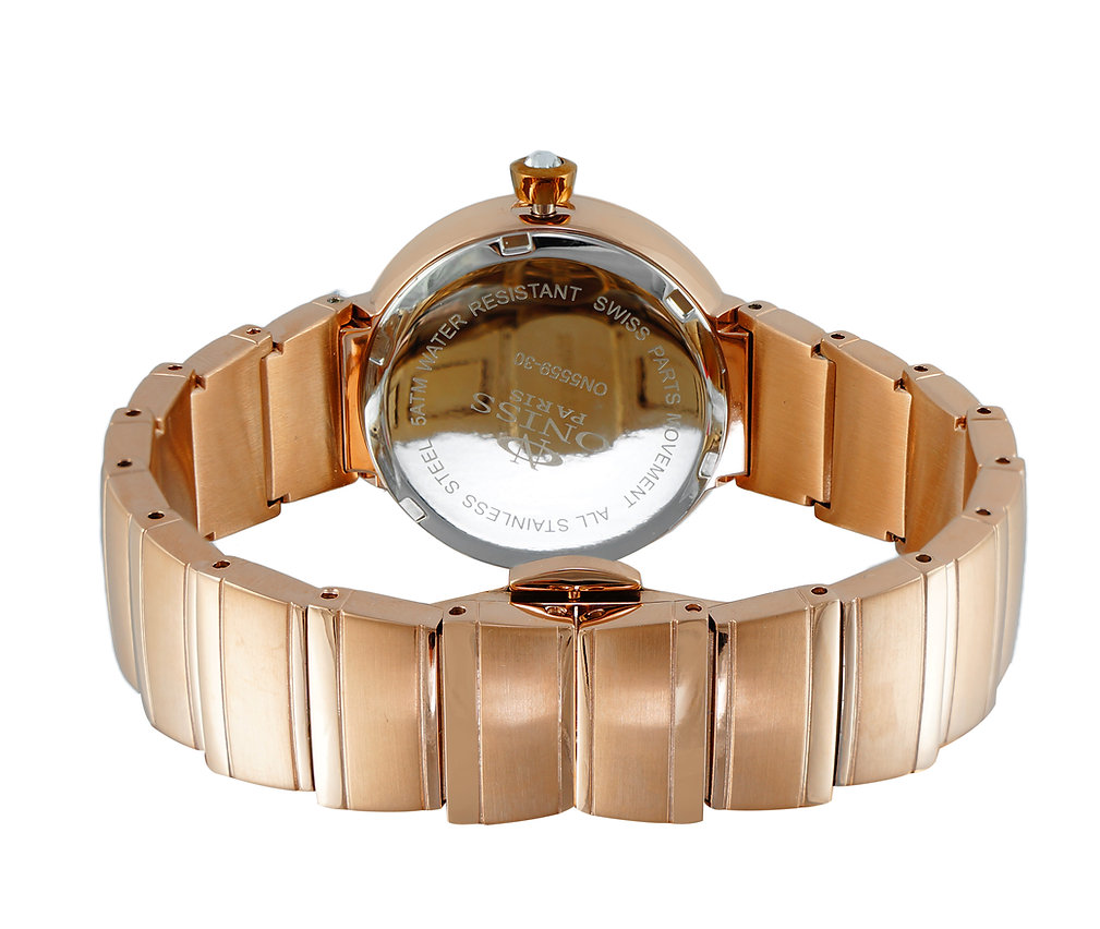 ONISS SWISS MOVEMENT, AUSTRIAN CRYSTAL ACCENT,RED MOTHER OF PEARL DIAL, ON5559-30RGG- RETAIL AT (MSRP: $425.00)