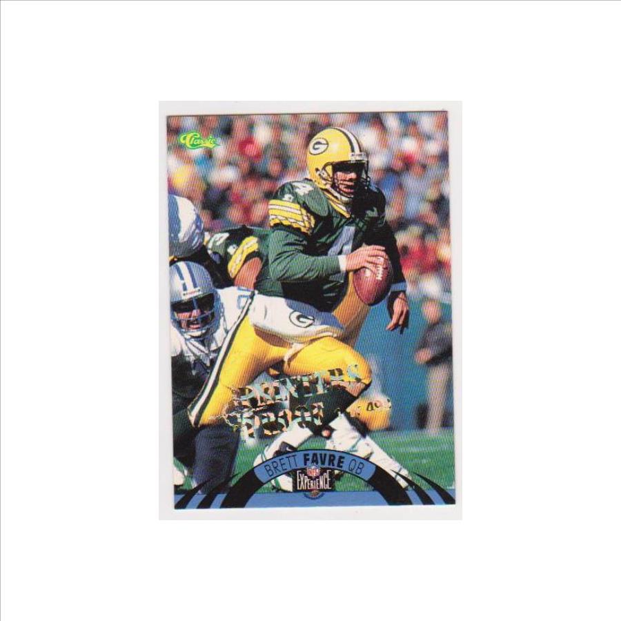 This is a 1995 Classic NFL Experience Printer's Proof Brett Favre #19 insert card.  This was an extremely tough card to pull from packs as only 499 were produced.  It is in approximately Near Mint condition.