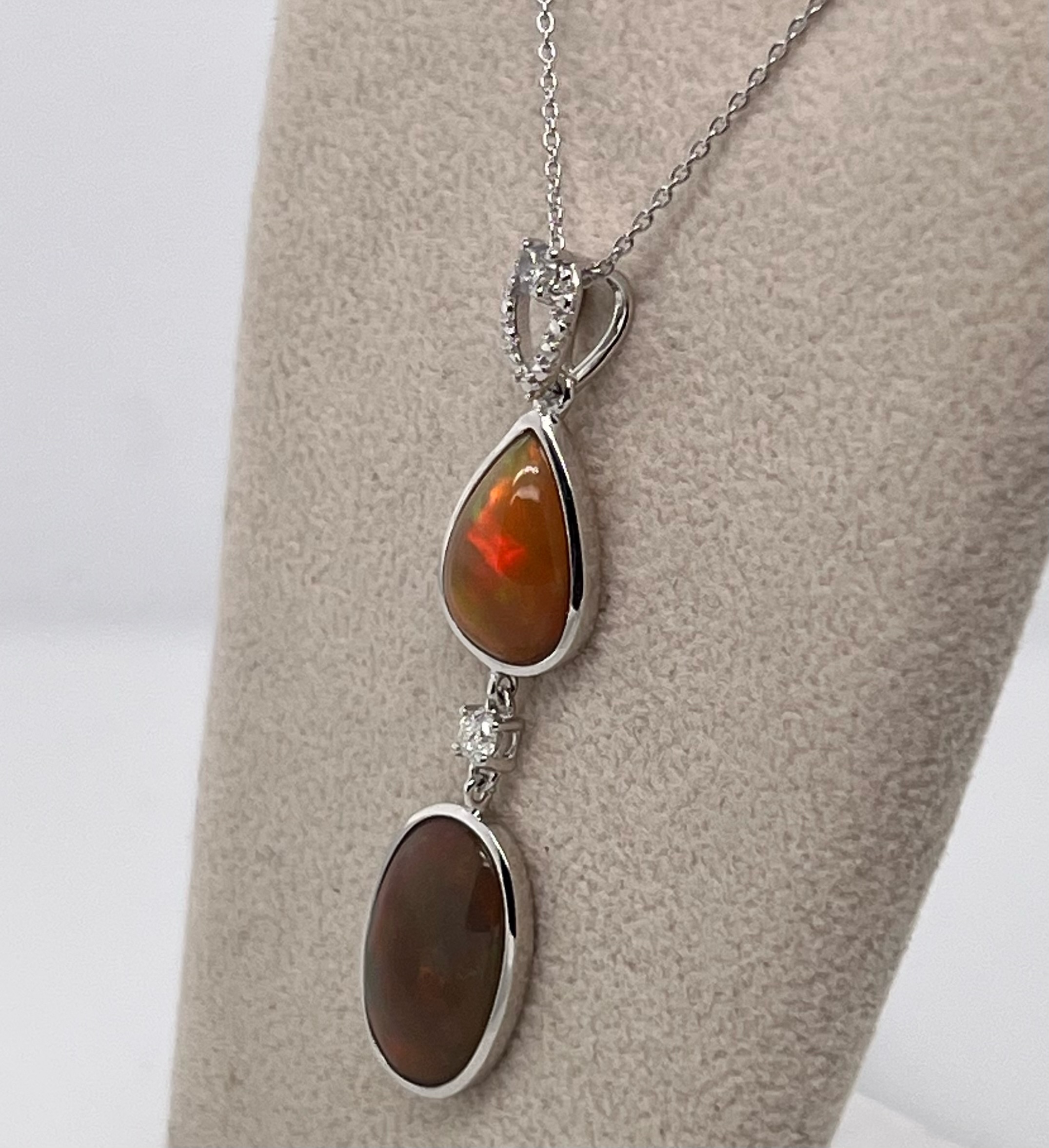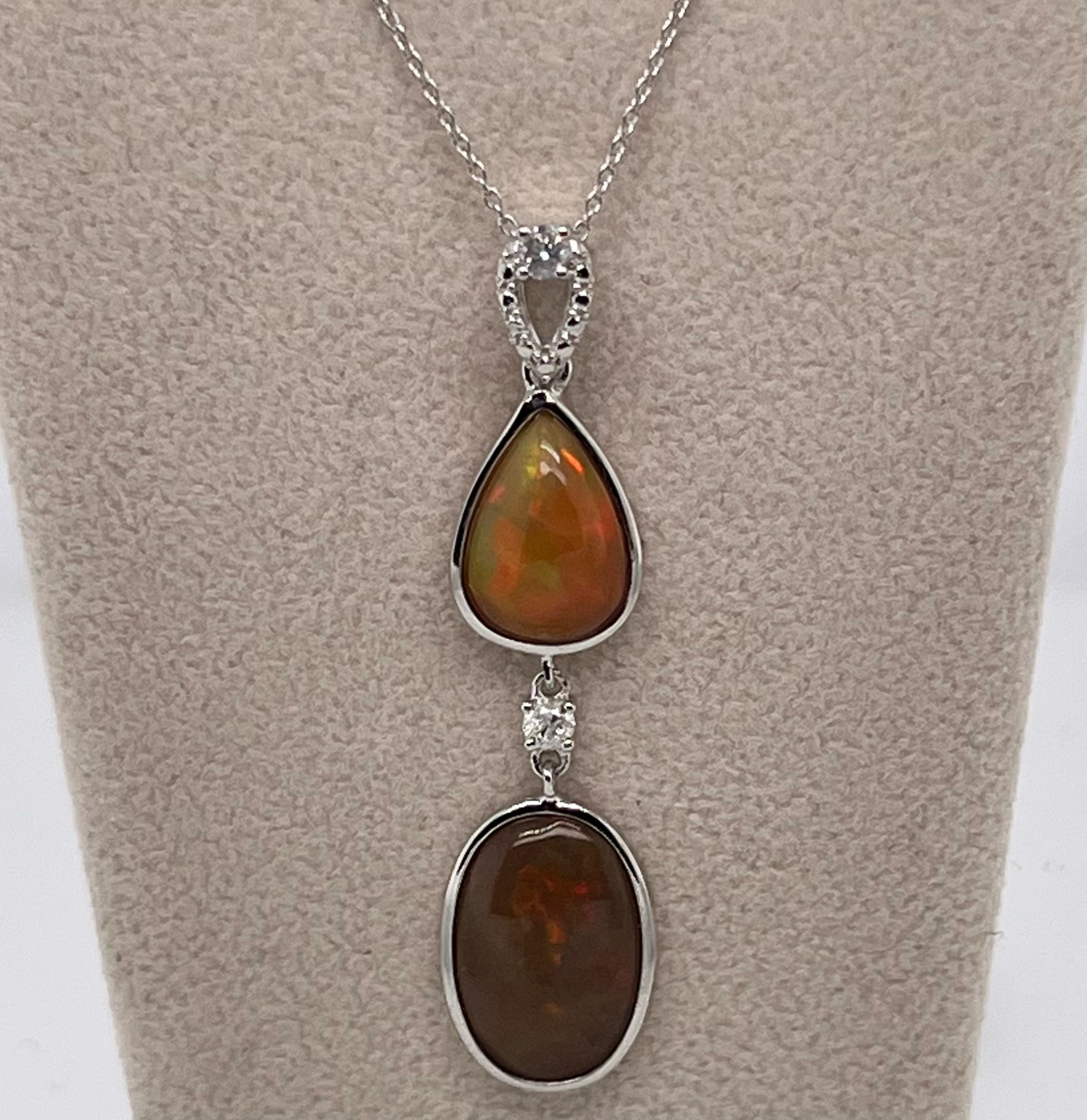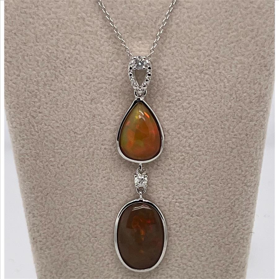 OPAL & DIAMOND NECKLACE IN STERLING SILVER