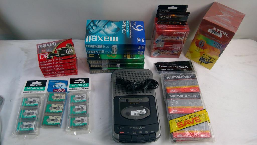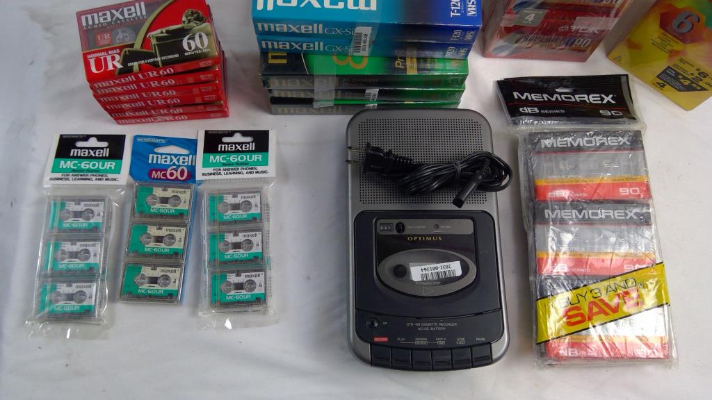 Optimus Cassette Recorder, Cassettes, And More Bulk Lot, 21 Pieces
