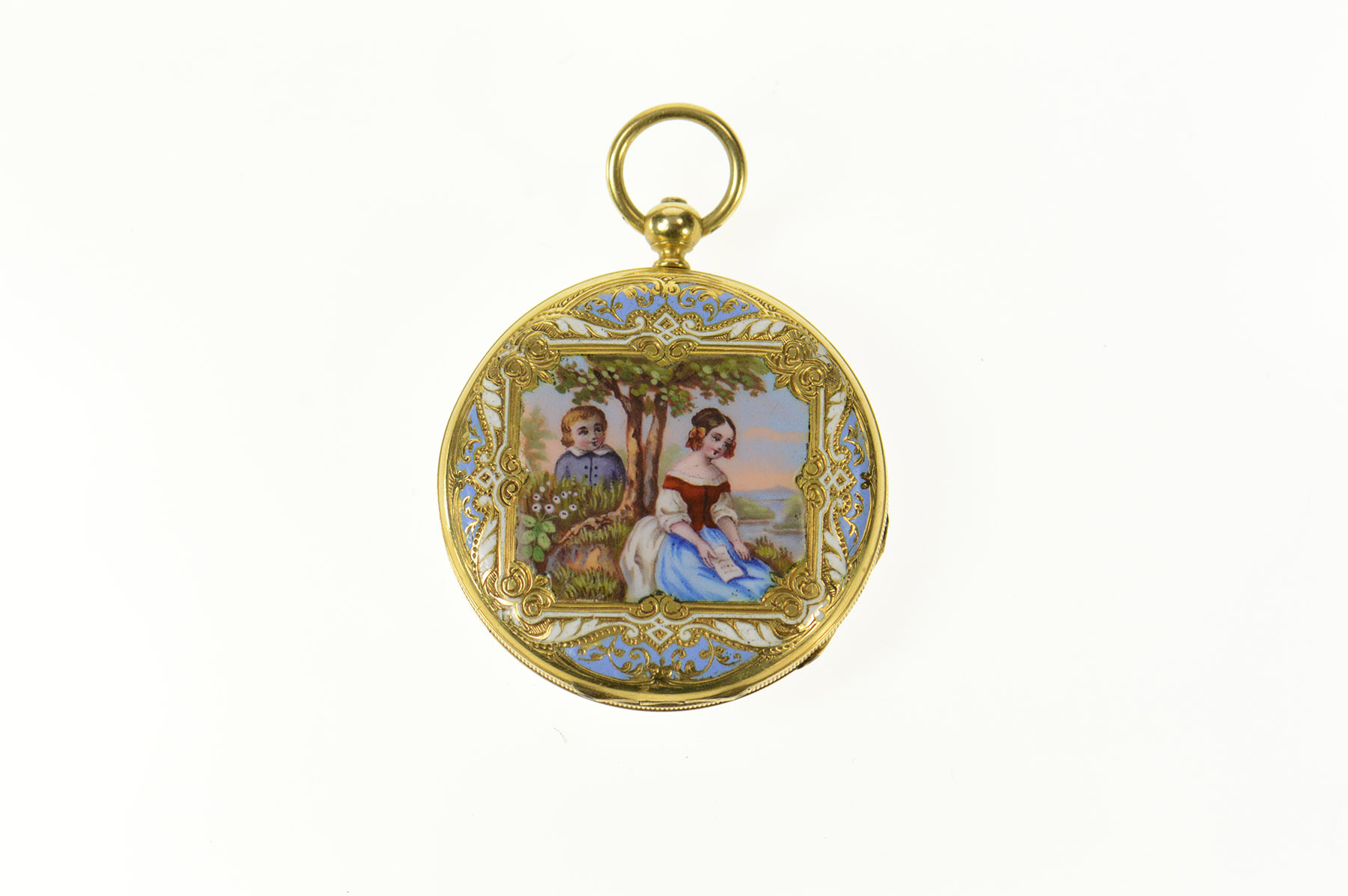 Item:  Ornate Victorian Painted Enamel Elaborate Pocket Watch