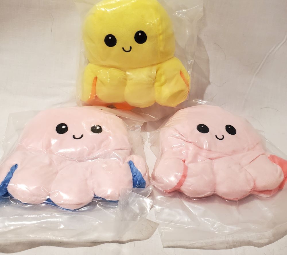 Pack of Three Reversable Stuffed Toy Octopuses