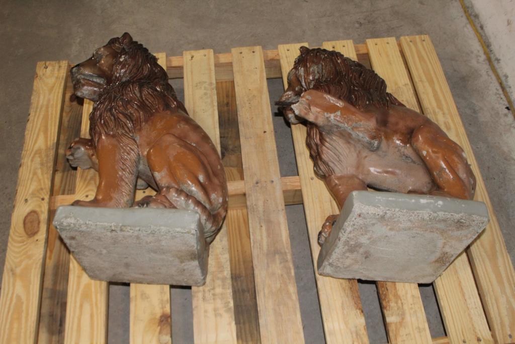 Get a great deal with this online auction for exterior decor presented by Property Room on behalf of a law enforcement or public agency client. - Lions measure approx 23" tall. Bases are approx 10" x 10"