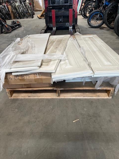 Get a great deal with this online auction presented by PropertyRoom.com on behalf of a law enforcement or public agency client. - Pallet includes white cabinet doors (may not all be sets)