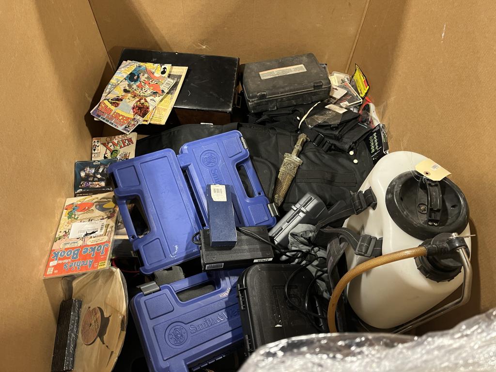 Get a great deal with this online auction presented by PropertyRoom.com on behalf of a law enforcement or public agency client. - Items include: Comics, Smith & Wesson gun cases, Knifes, Sprayer, Power adapters and more