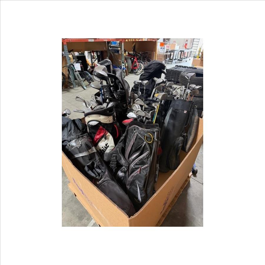 Pallet Of Golf Clubs With Bags