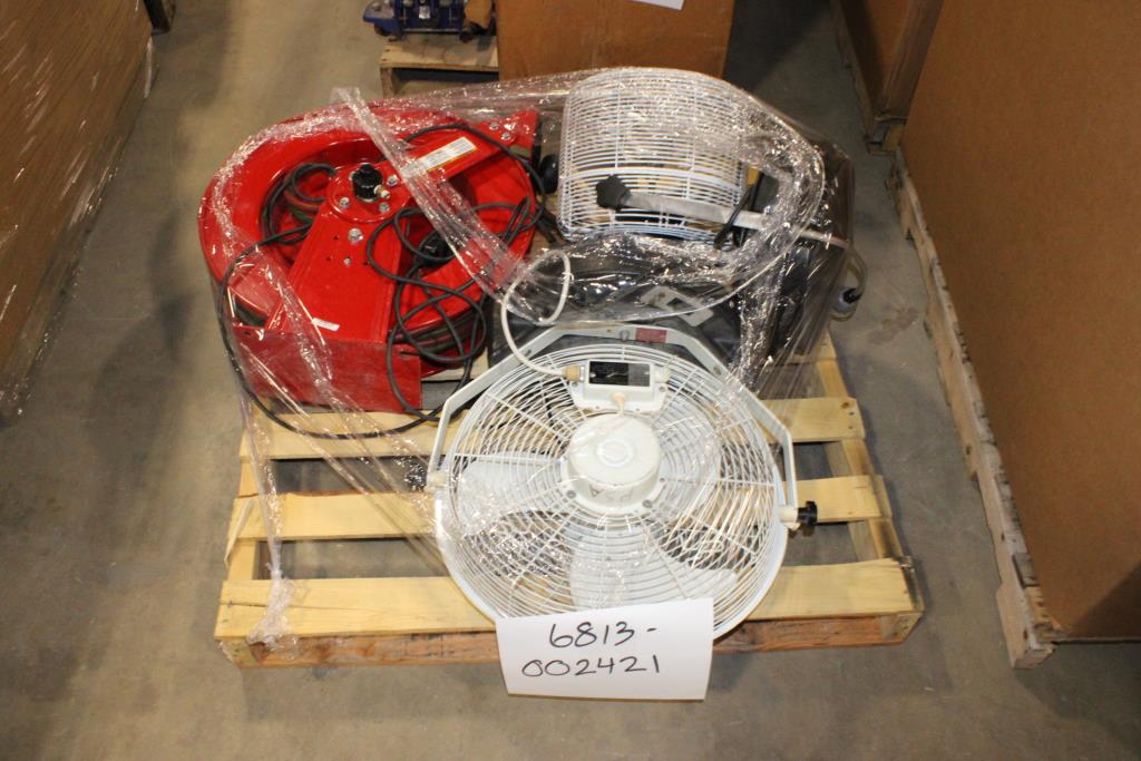 Pallet With Fans & Wire Spool, 3 Pieces