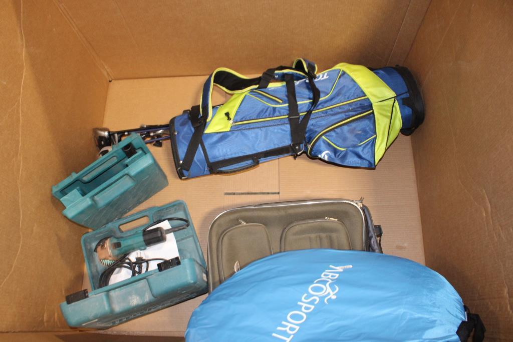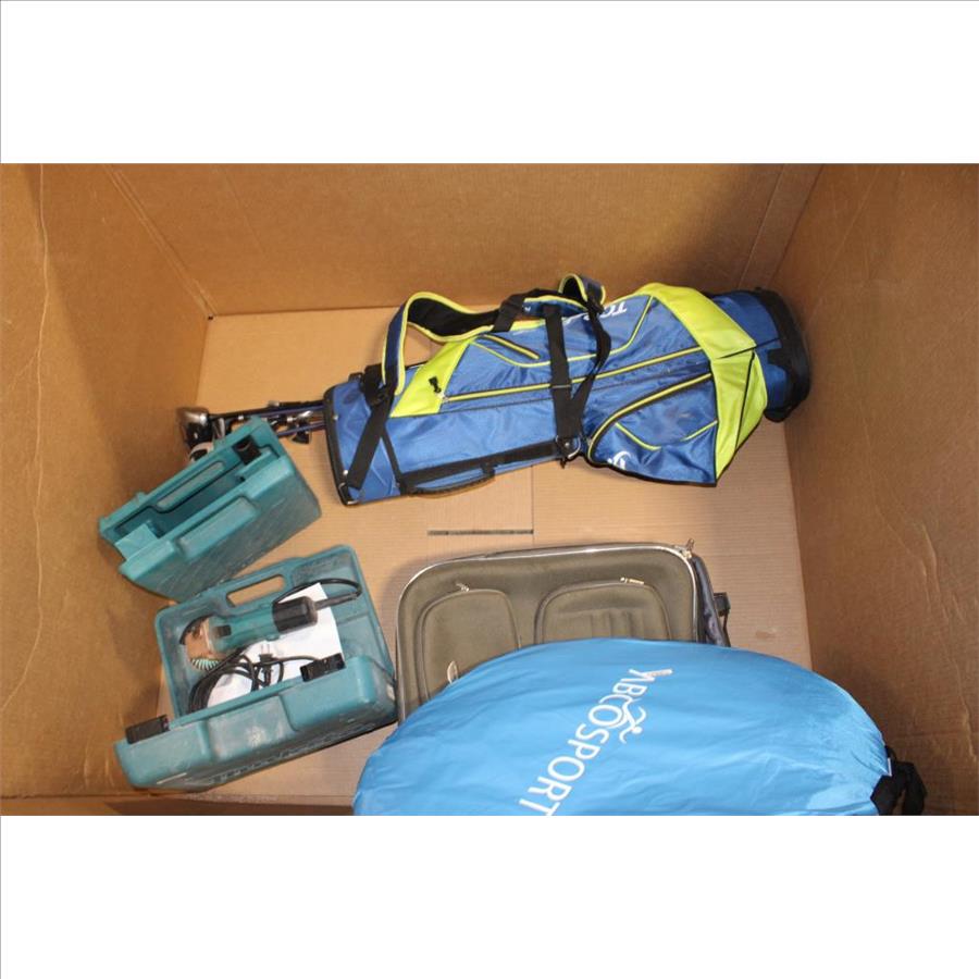 Get a great deal with this online auction presented by PropertyRoom.com on behalf of a law enforcement or public agency client. - Makita drill, golf clubs with bag, makita grinder, suitcase