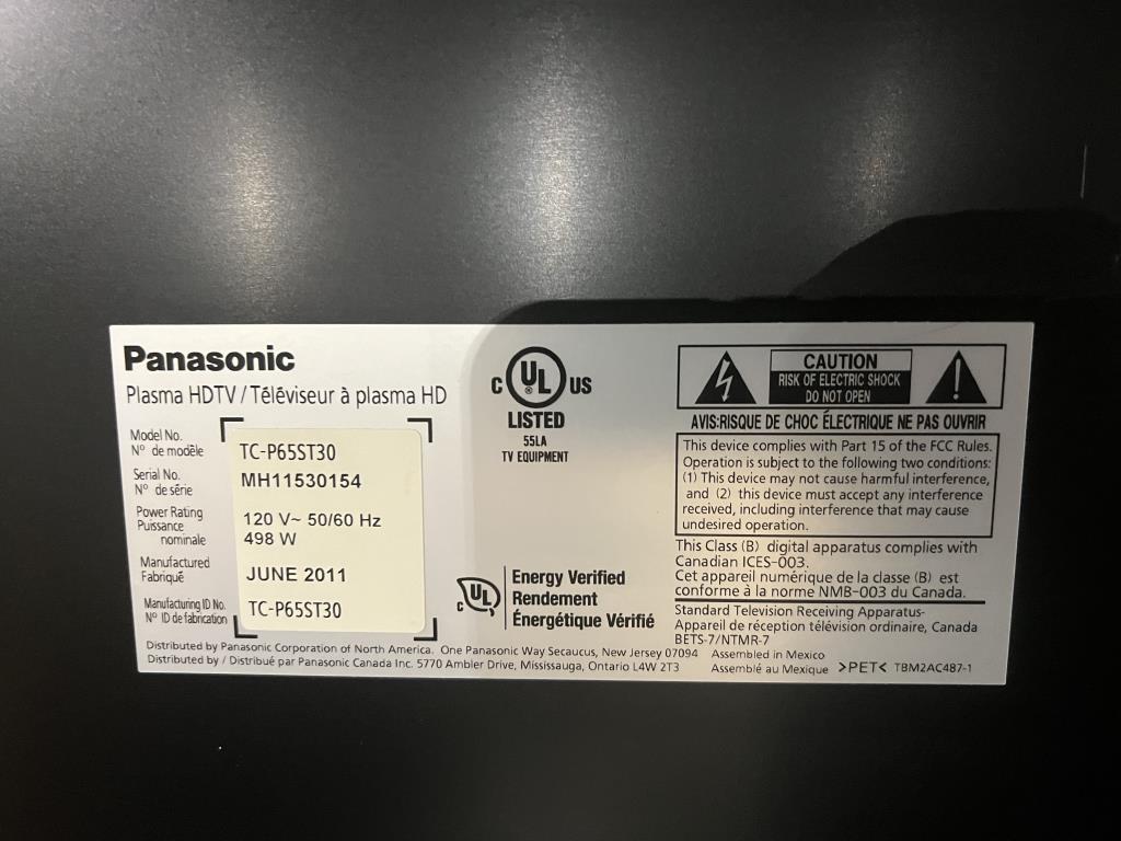 Get a great deal with this online auction presented by PropertyRoom.com on behalf of a law enforcement or public agency client. Model: TC-P655T30 Screen Size: 65" Date of Manufacture: 2011 Measurements: height 37", length 62" Base: no Remote Control: yes Power Cord: yes Physical Condition: light marks and a little dusty Testing Results: Item was tested for power only and it powered on, displayed menu. Input and output ports were not tested and may be non-functional. Item is sold "As Is".