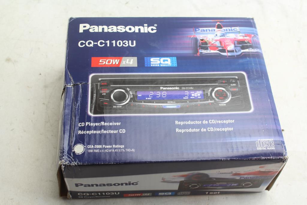 Get a great deal with this online auction for a car stereo presented by Property Room on behalf of law enforcement or public agency client. Model: Panasonic CQ C1103U Car CD Receiver - 200W Max Watts Per Channel: 200W Detachable Faceplate: yes Aux. Input: no Cosmetic Condition: Good condition, appears minimally used, has some visible wear, is a little dirty Testing Results: Untested due to lack of equipment