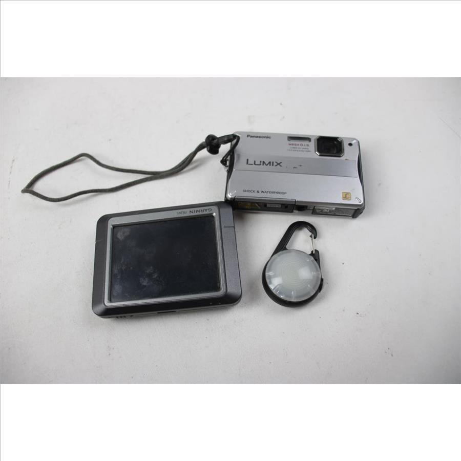 Panasonic Lumix DMC-TS10 Camera, Garmin Nuvi 250 GPS, And Carabiner Light, 3 Pieces