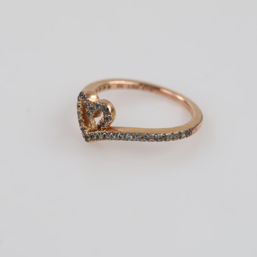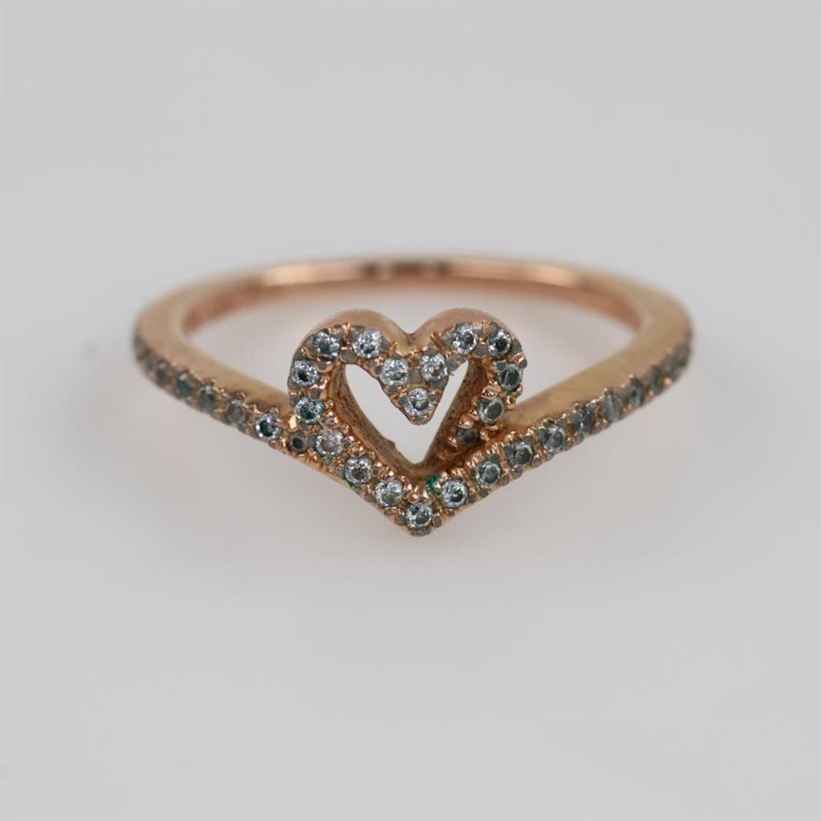 Pandora 14kt Rose Gold Plated Clear Stone Sparkling Wishbone Heart Ring