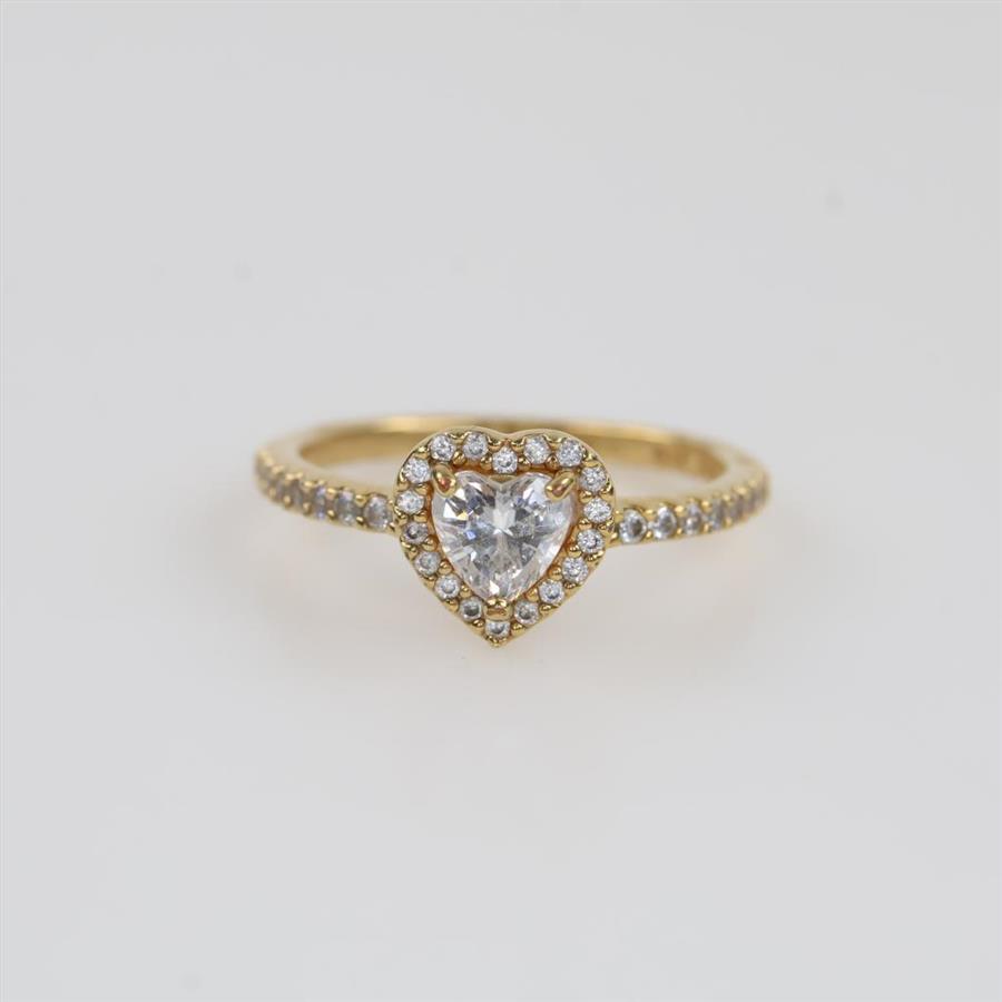 Pandora Elevated Heart Ring Silver & GP Clear Stones