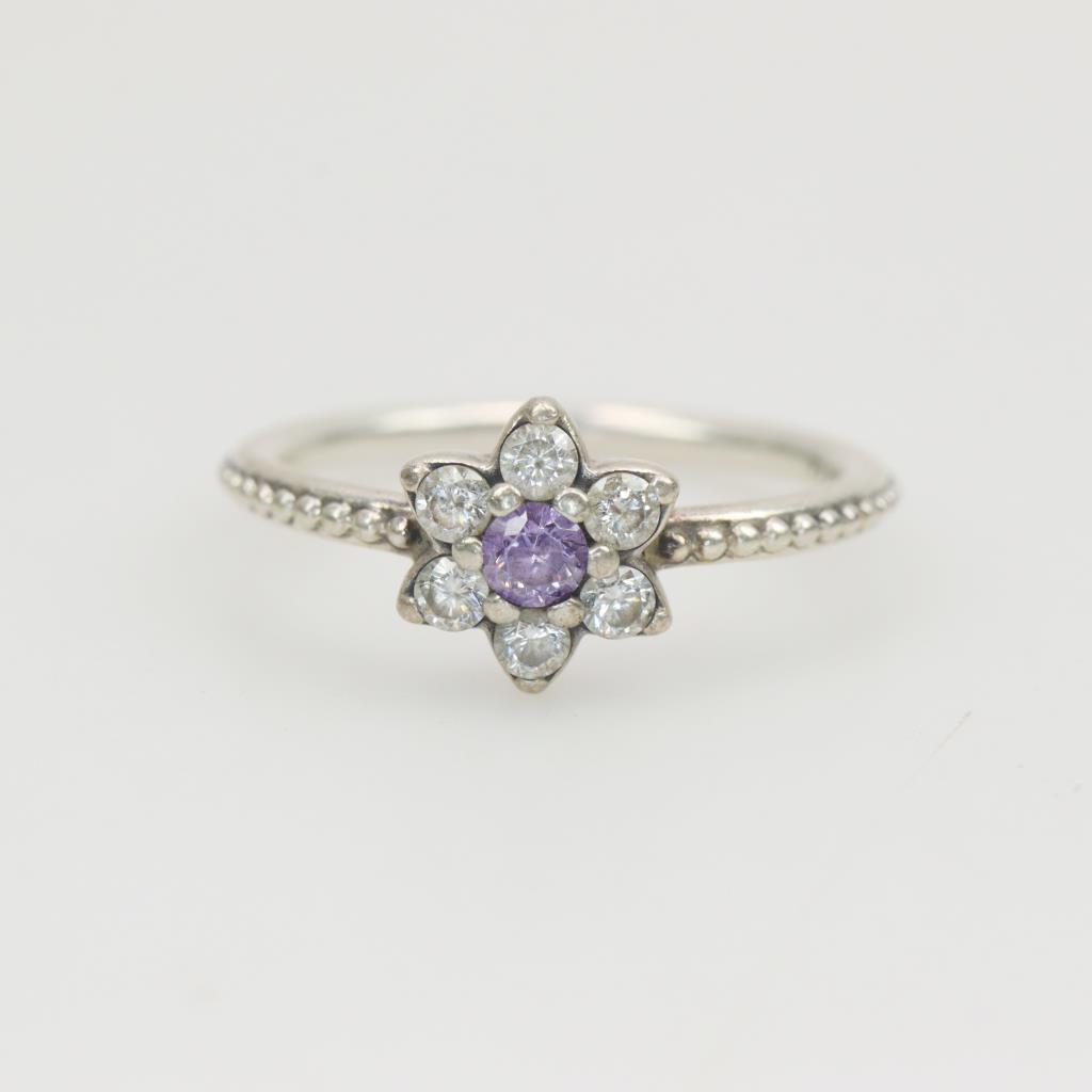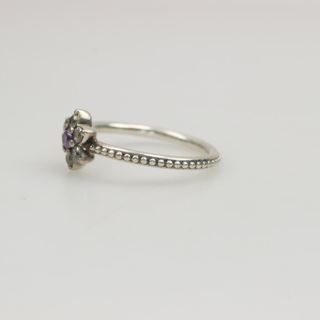 Pandora Forget Me Not Silver Ring With Purple Stone