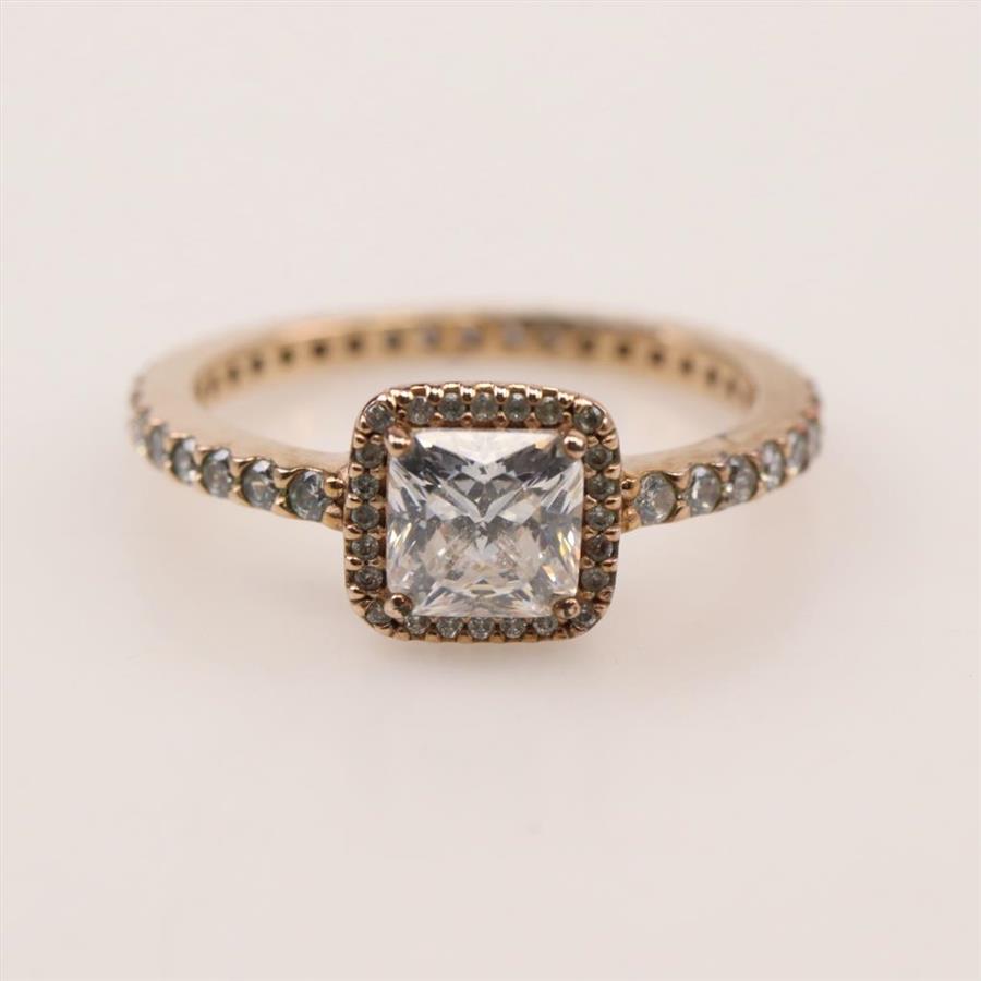 Pandora Sterling Silver 18kt GP Square Sparkle Halo Ring