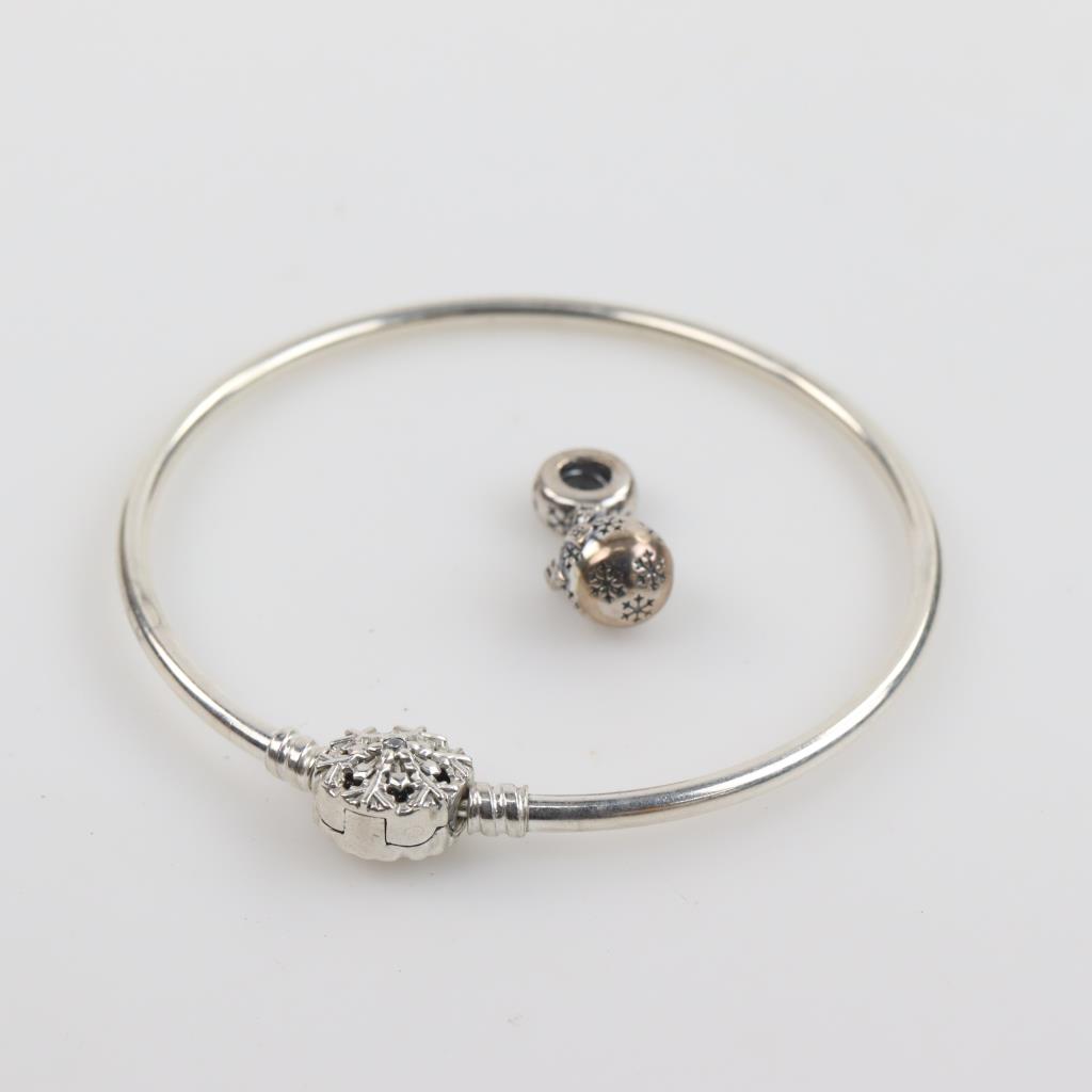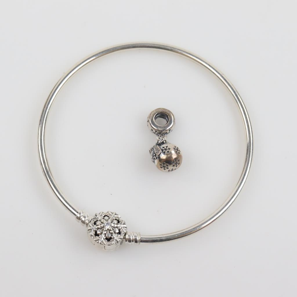 Pandora Sterling Silver Bangle And Charm