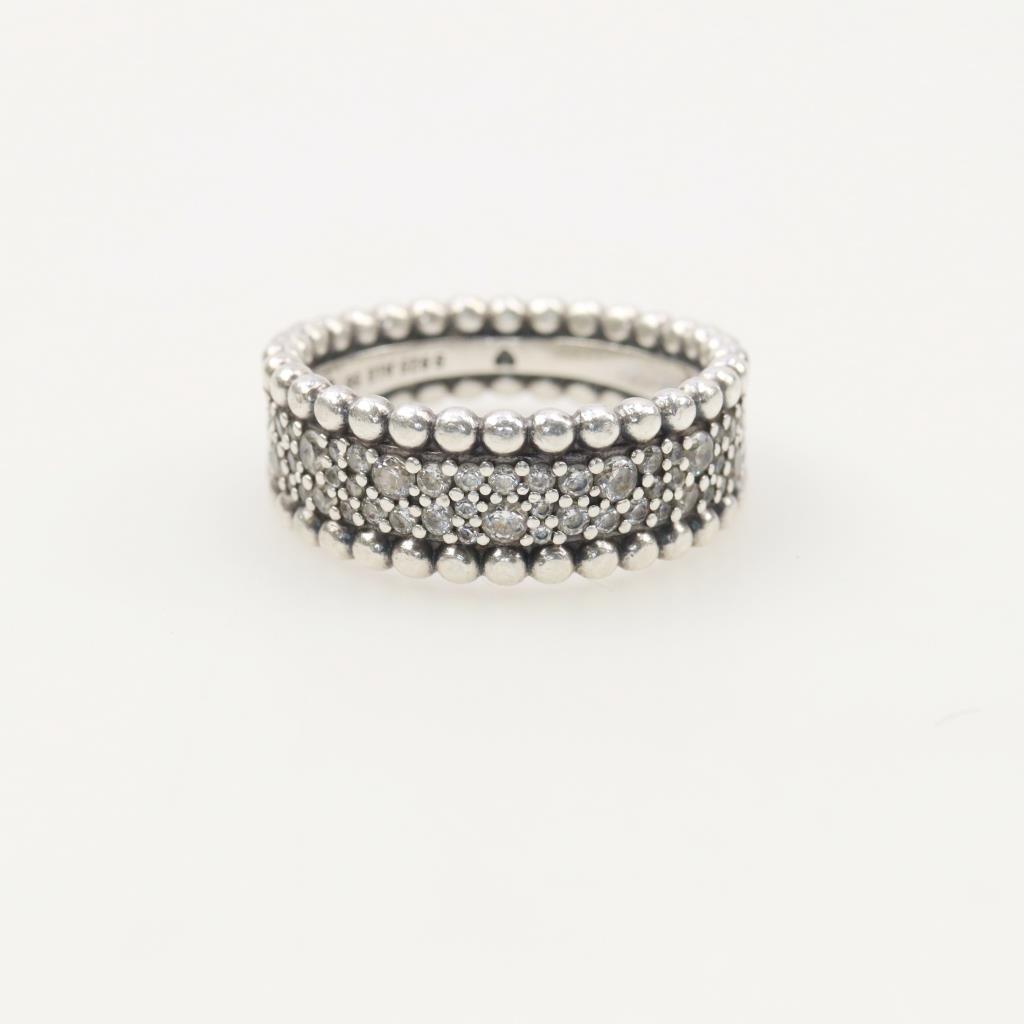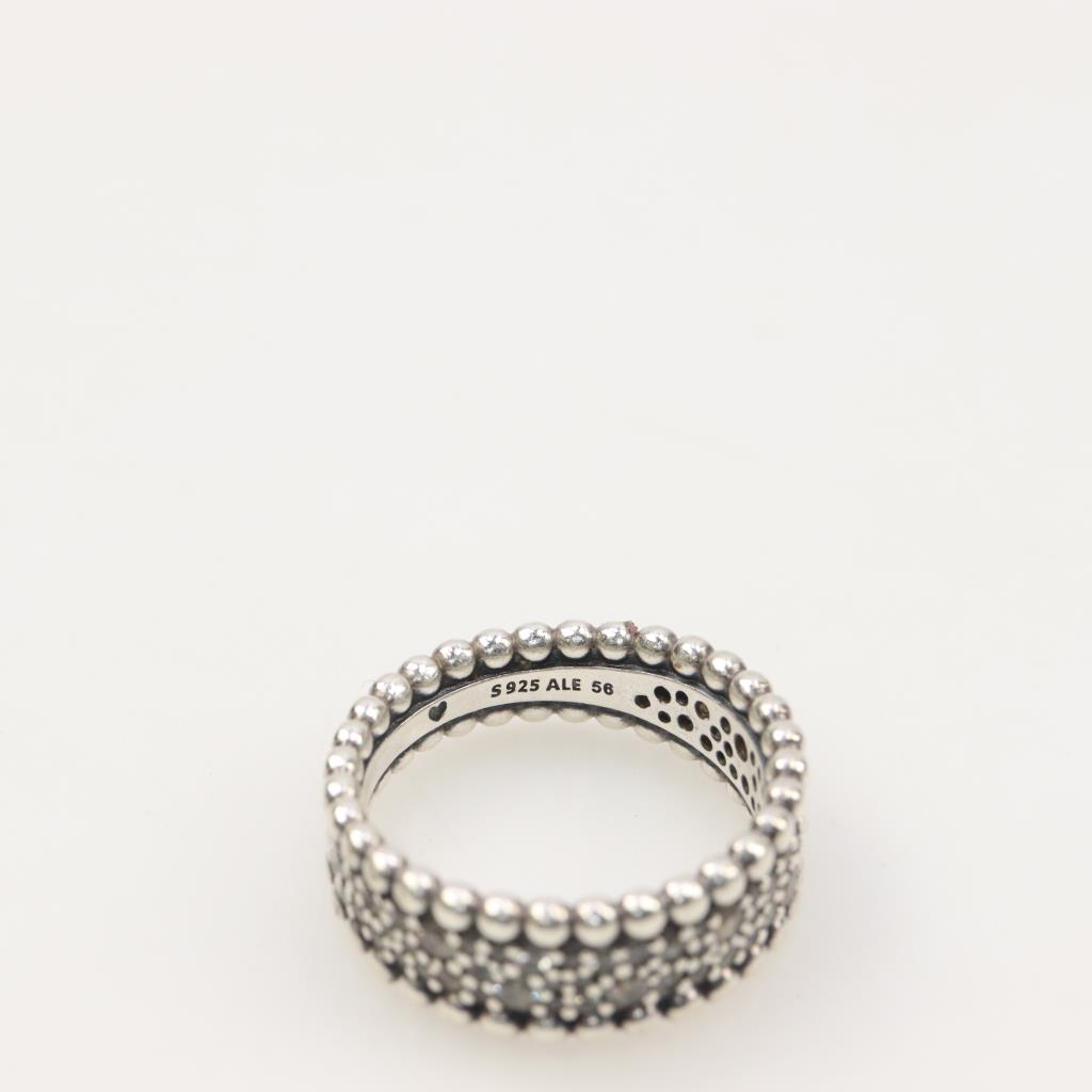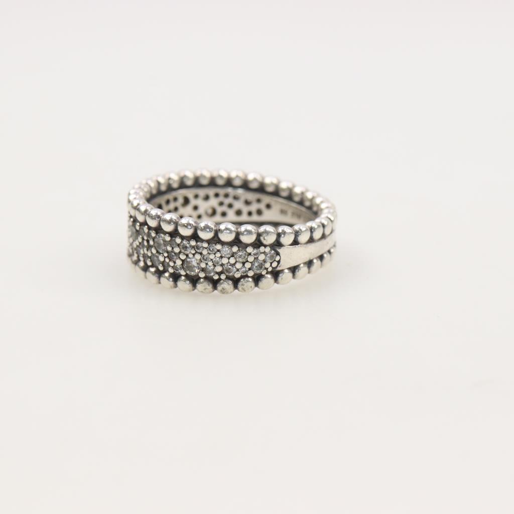 Pandora Sterling Silver Beaded Pave Band Ring