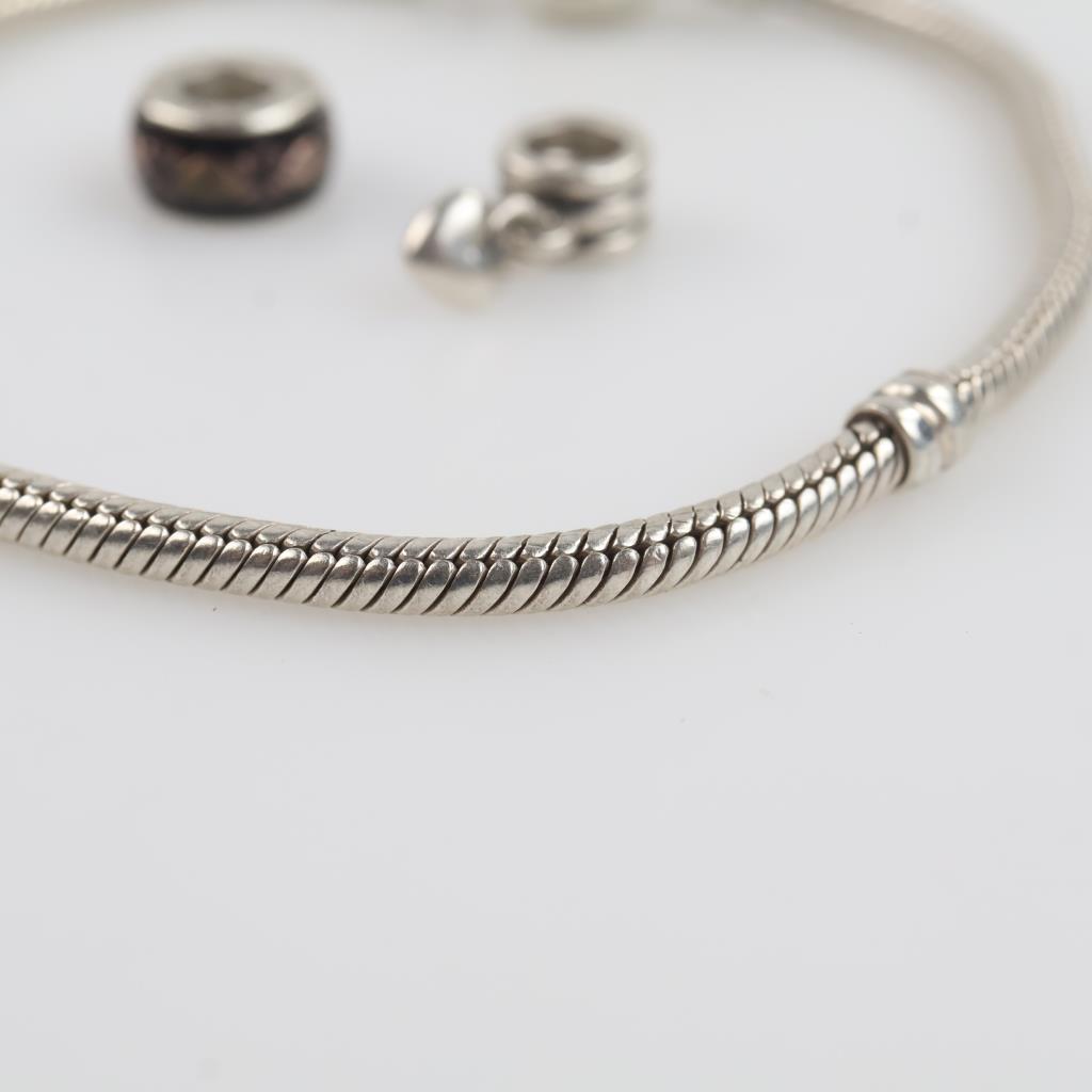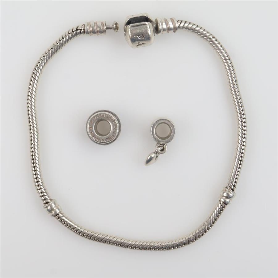 Pandora Sterling Silver Bracelet And Charms, 3 Pieces