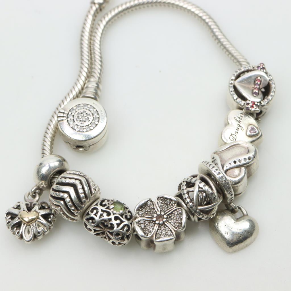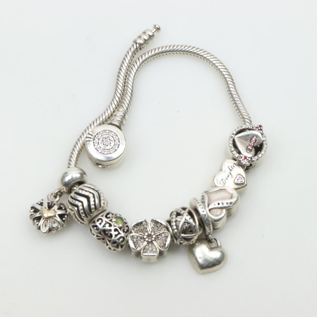 Pandora Sterling Silver Bracelet With Charms, 10 Pieces