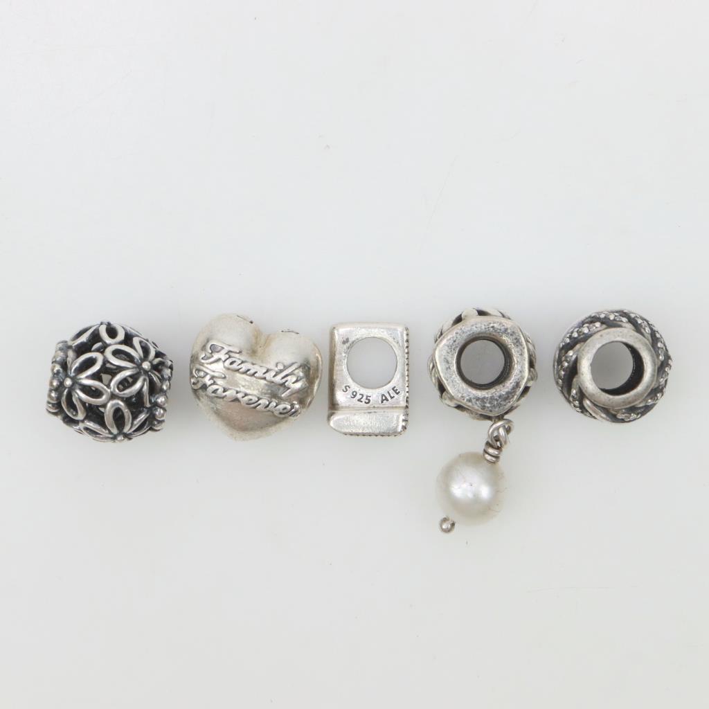 Pandora Sterling Silver Charms, 5 Pieces
