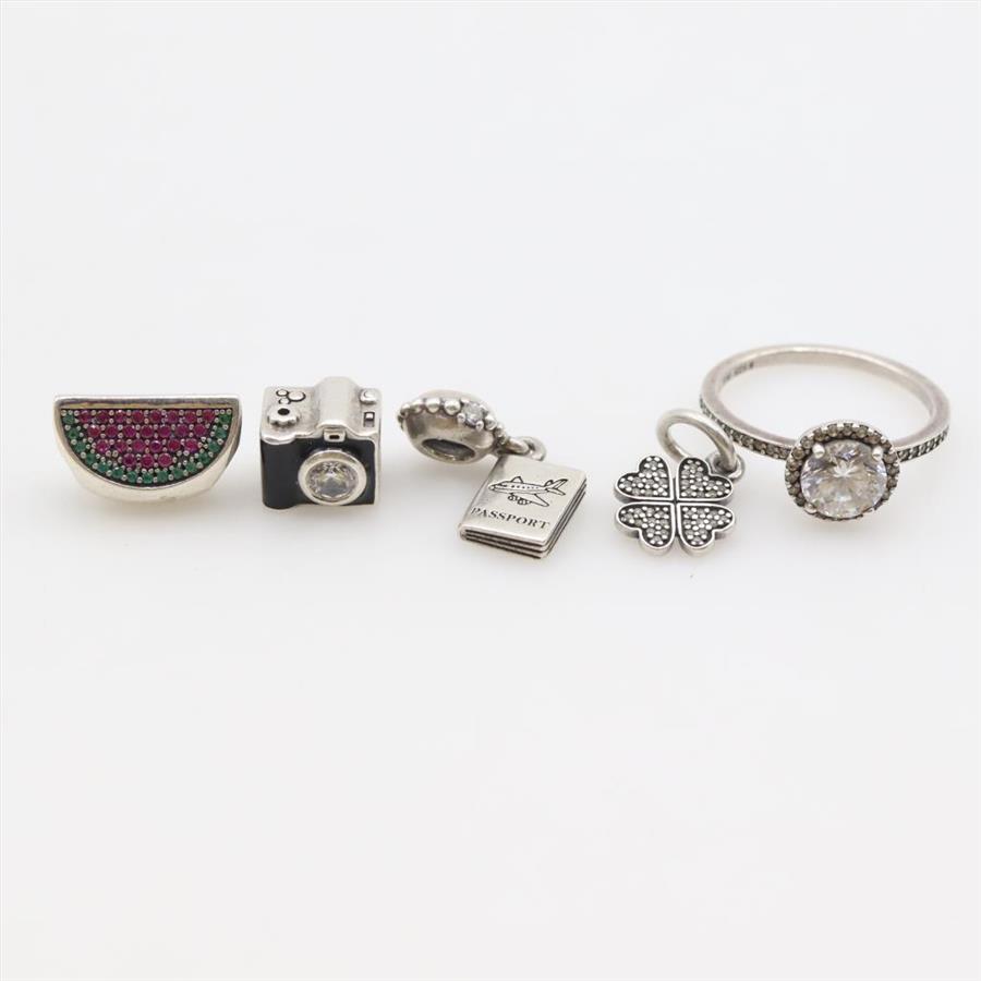 Pandora Sterling Silver Charms And Ring, 5 Pieces