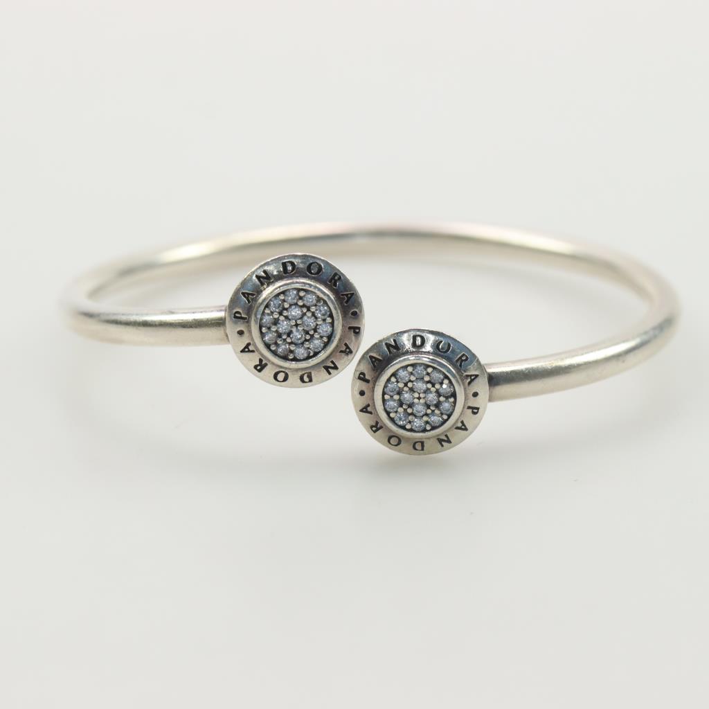 Pandora Sterling Silver Clear Stone Cuff Bracelet