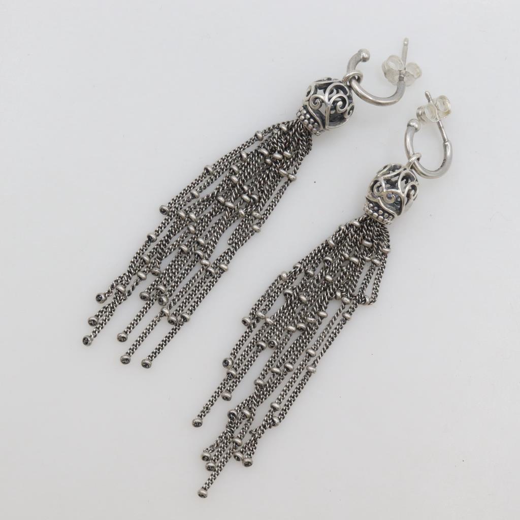 Pandora Sterling Silver Dangle Heart Scroll Chandelier Earrings