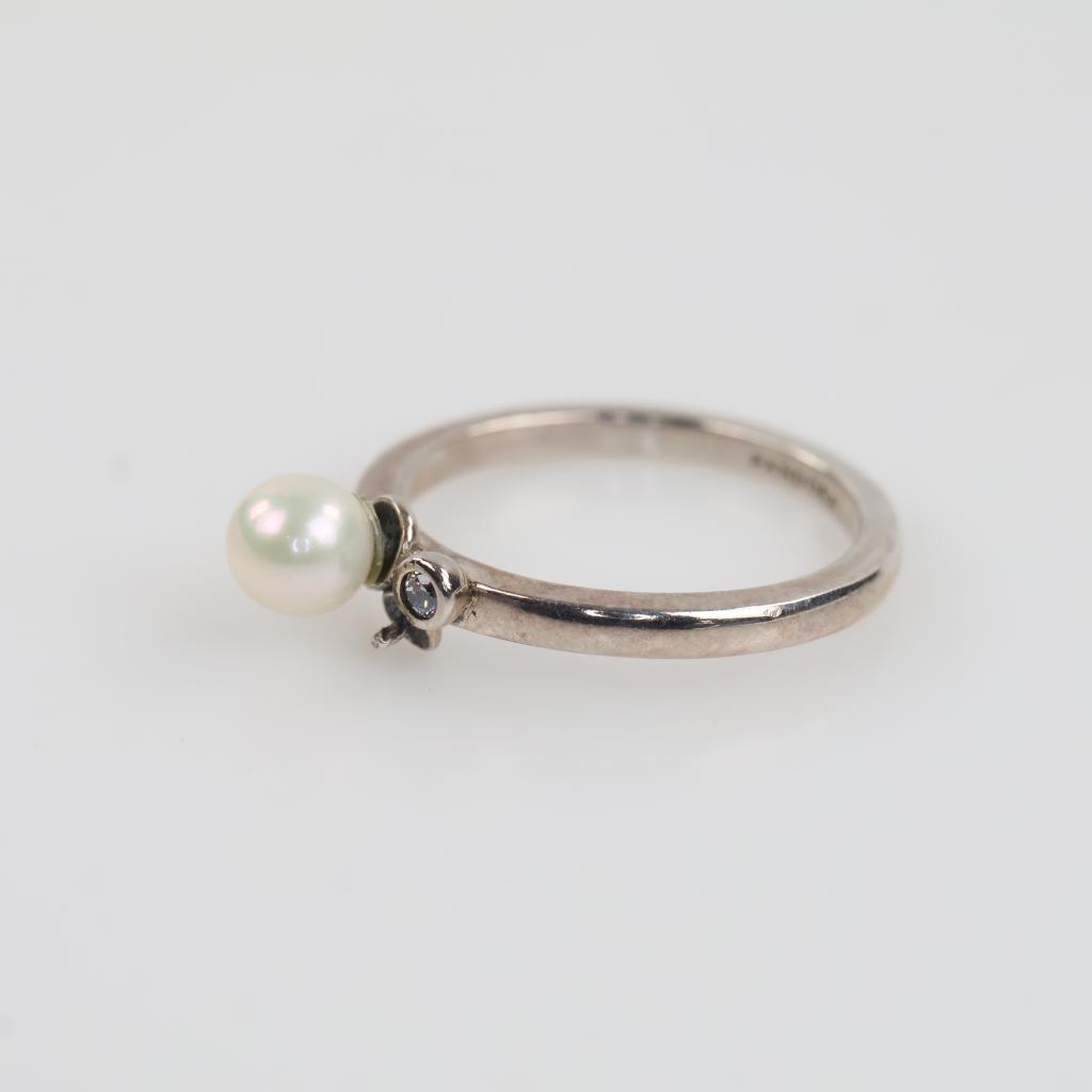 Pandora Sterling Silver Freshwater Cultured Pearl Clear Stone Accent Ring