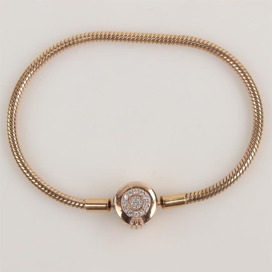 Pandora Sterling Silver GP Sparkling Crown Snake Chain Bracelet