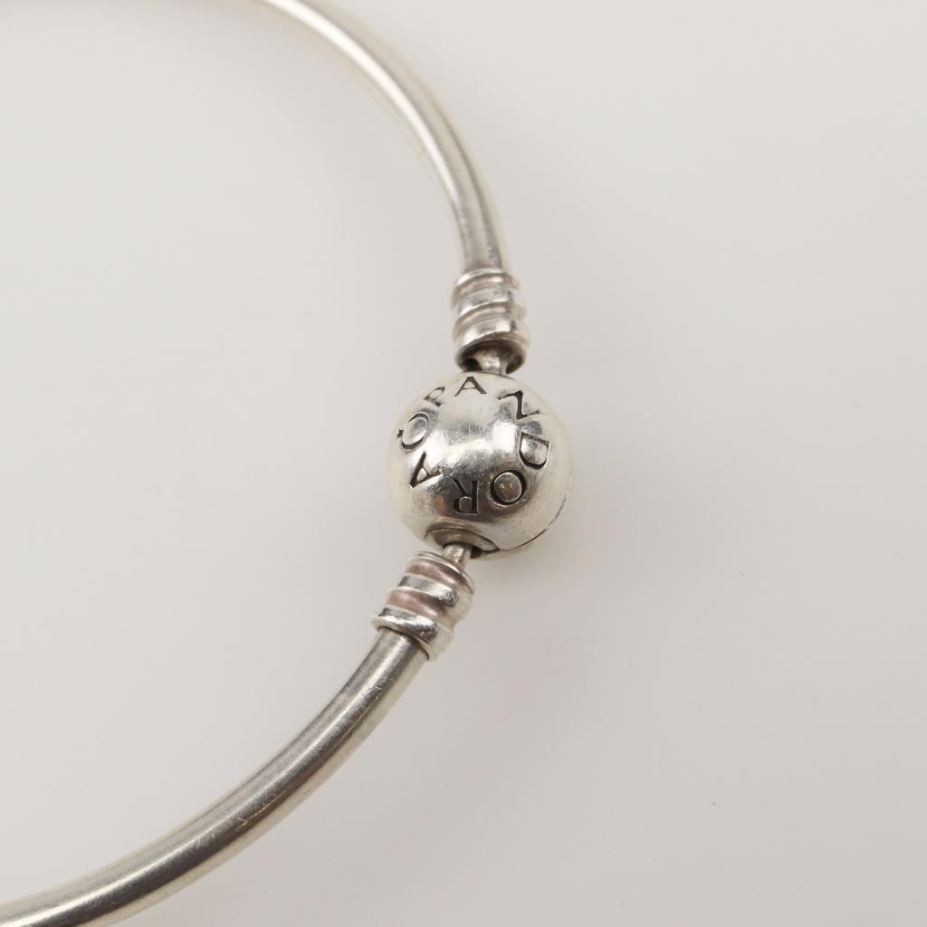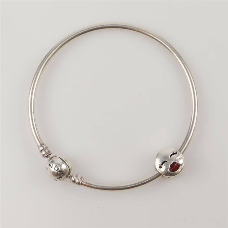 Pandora Sterling Silver Kiss Me Bangle Bracelet With Charm