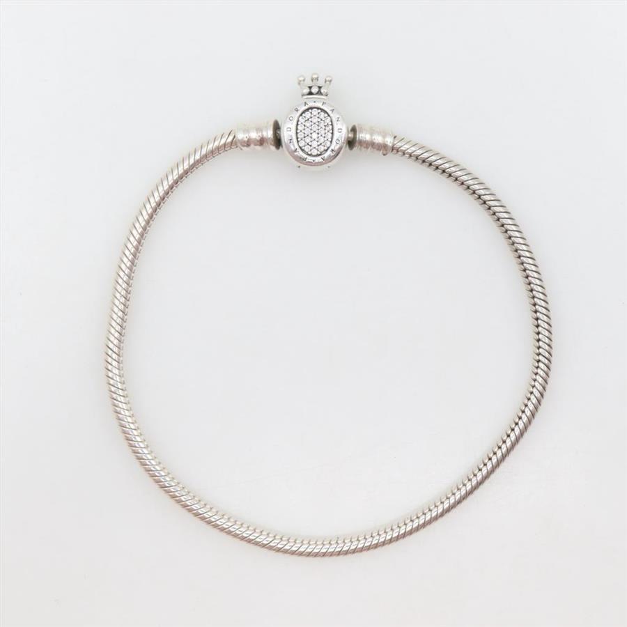 Pandora Sterling Silver Moments Crown O & Snake Chain Charm Bracelet