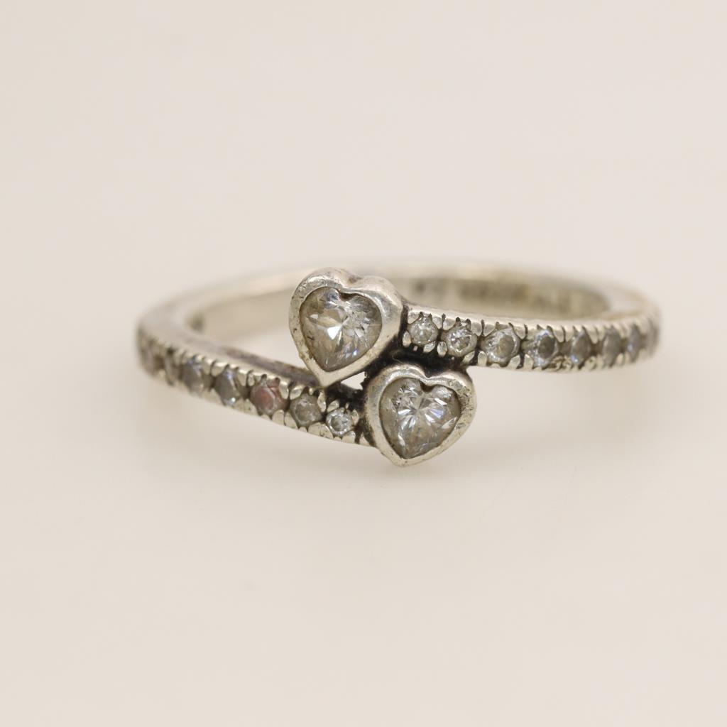 Pandora Sterling Silver Two Sparkling Hearts Ring