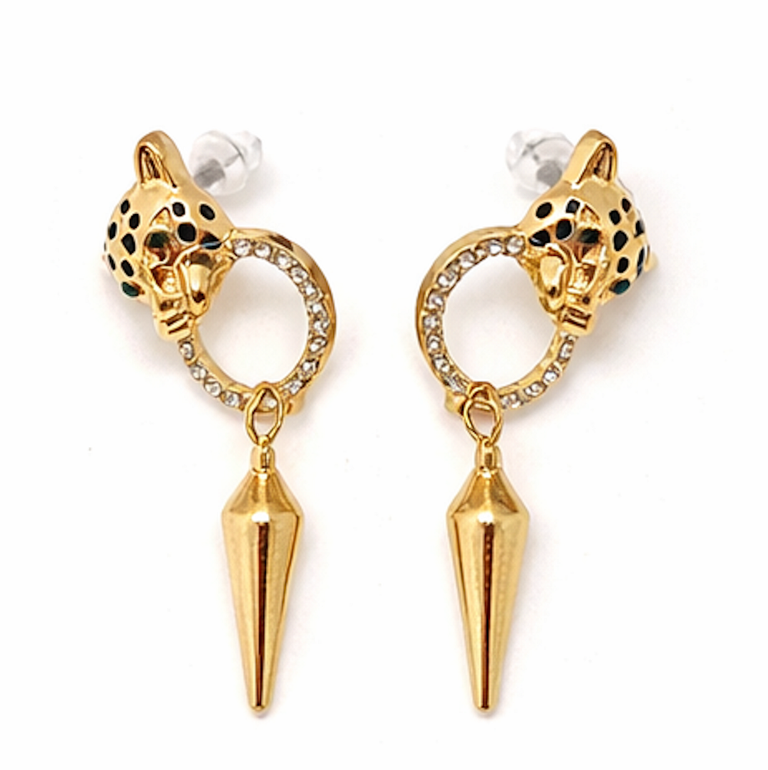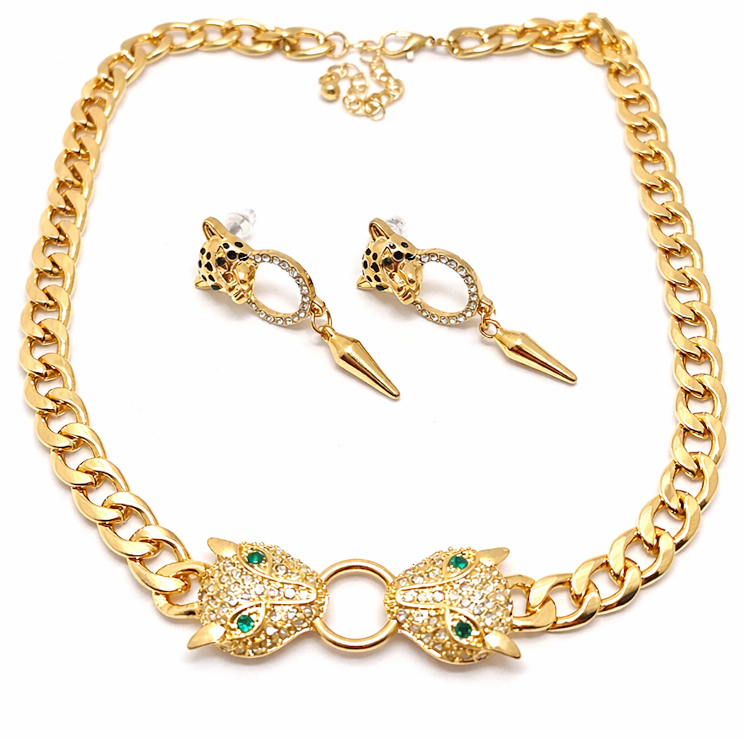 Panther Necklace & Earrings Set 18K Gold Overlay