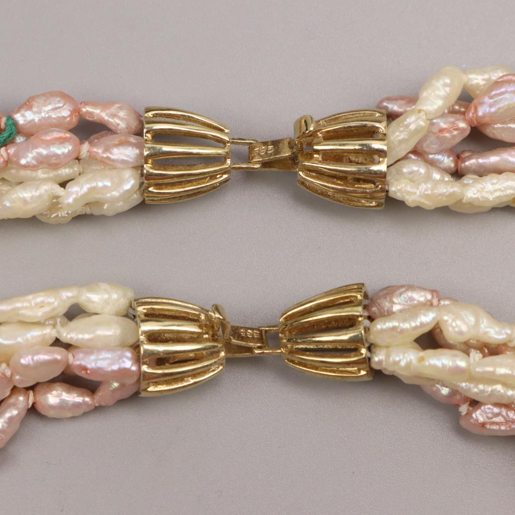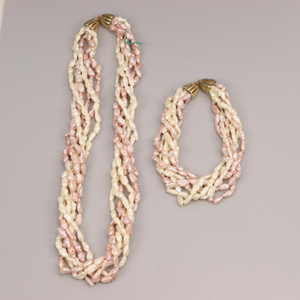 Pearl 6 Strand Necklace And Bracelet 14kt Gold Clasp, 2 Pieces